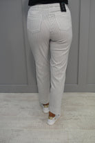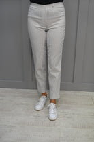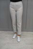 Styling patterned trousers with a chic jumper or top is a fantastic way to let your unique personality shine through. The Robell Bella 09 Beige & White Stripe Trousers are smart yet fun and look stunning paired with so many top and shoe combinations. These beige and white striped, straight-legged trousers feature a zip-up front, a high waistline and two back pockets.
