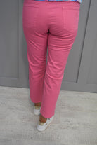 The ankle-length design of the jeans is perfect for showing off your favuorite shoes and adding a touch of style to your outfit. The pink colour of the jeans is bright and fun, adding a pop of colour to your wardrobe.