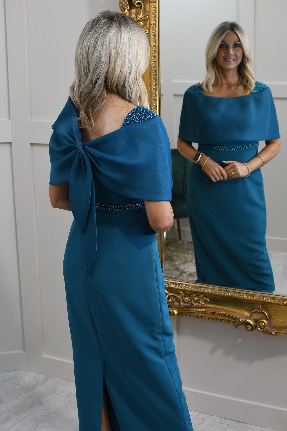 Couture Club Deep Jade Straight Dress With Bow & Diamante Detail- 8G153