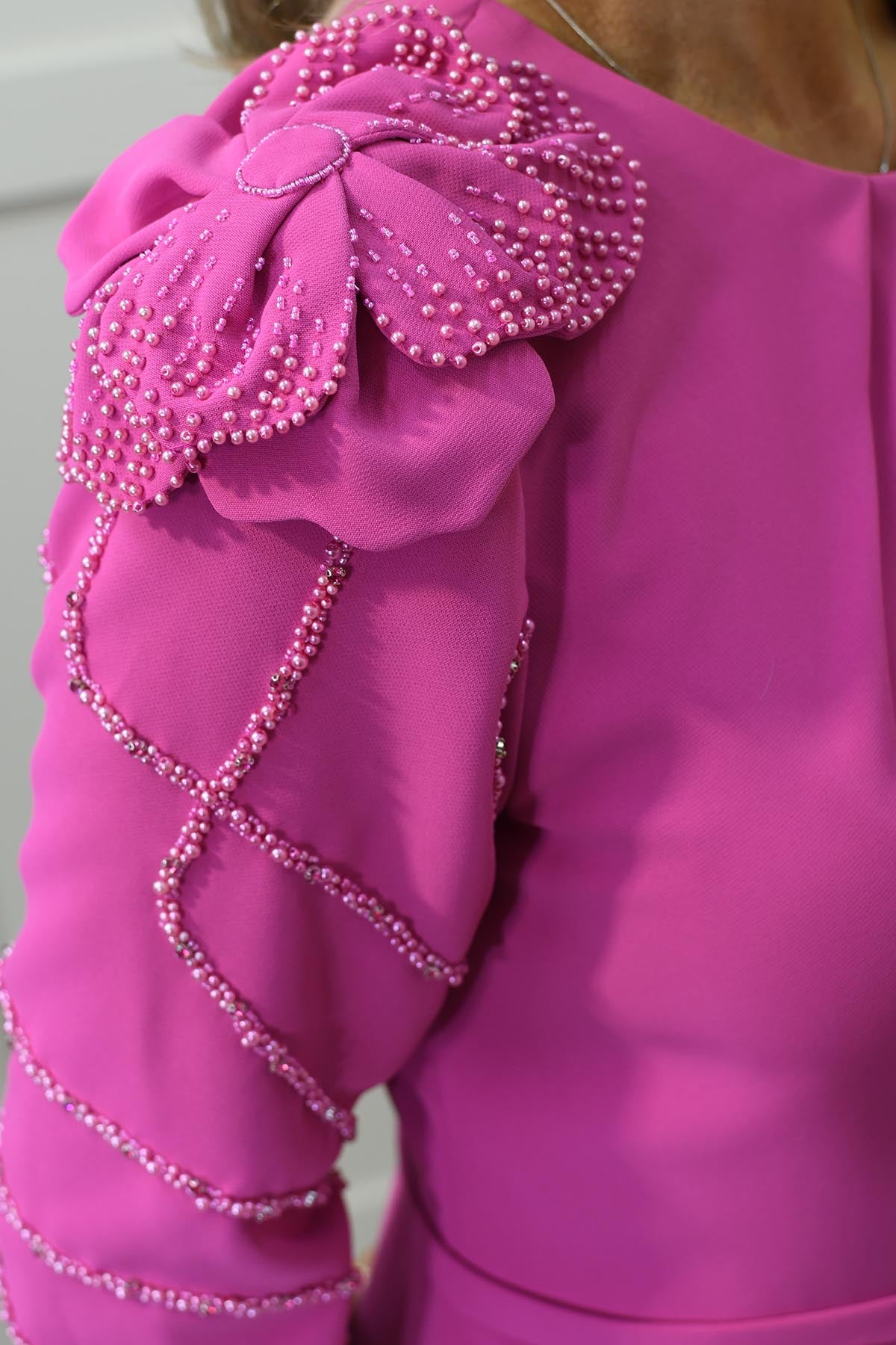 Couture Club Fuchsia Cape Dress With Embellished Floral Shoulders- 9G01