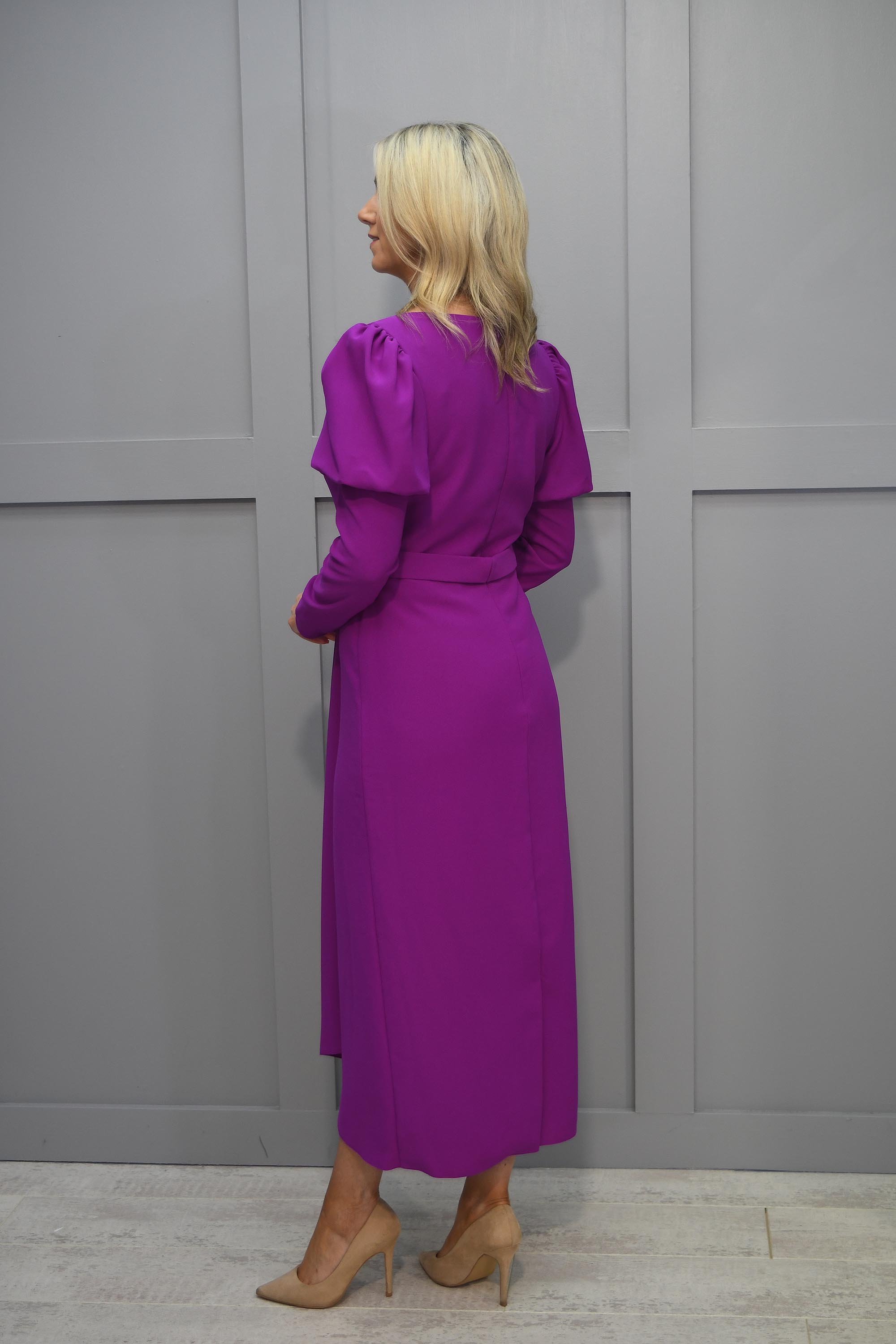Couture Club Deep Plum V Neck Dress With Puffed Shoulders- 7G122