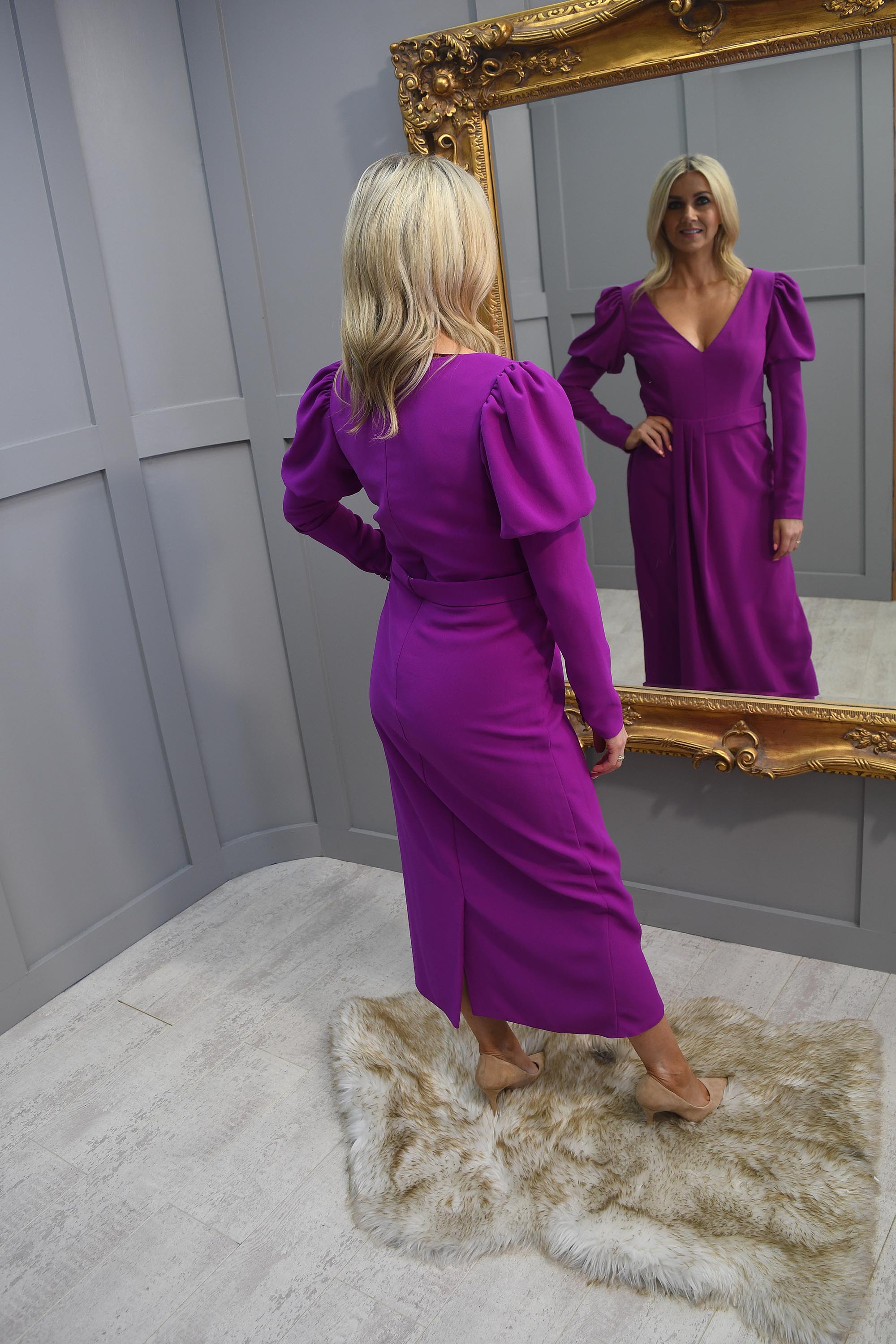 Make a statement in the Couture Club Deep Plum V-Neck Dress, designed for timeless elegance with a modern edge. Crafted in a luxurious deep plum fabric, this dress features a flattering V-neckline that elongates the silhouette, complemented by chic, puffed shoulders that add a touch of drama and sophistication. The tailored fit accentuates the waist, creating a refined hourglass shape, while the rich plum colour exudes sophistication and allure. Perfect for evening events, weddings, or formal occasions, this dress combines classic style with contemporary flair, making it a standout piece in any wardrobe.