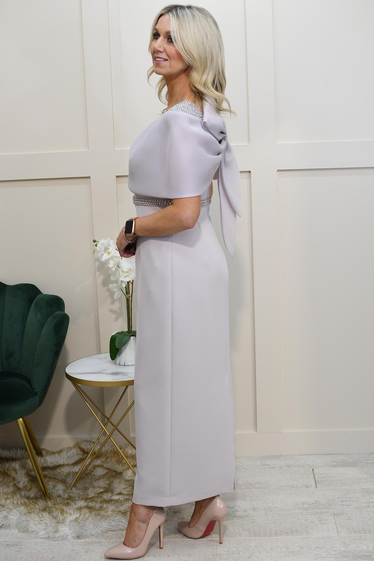 Couture Club Smoke Straight Dress With Bow & Diamante Detail- 8G153