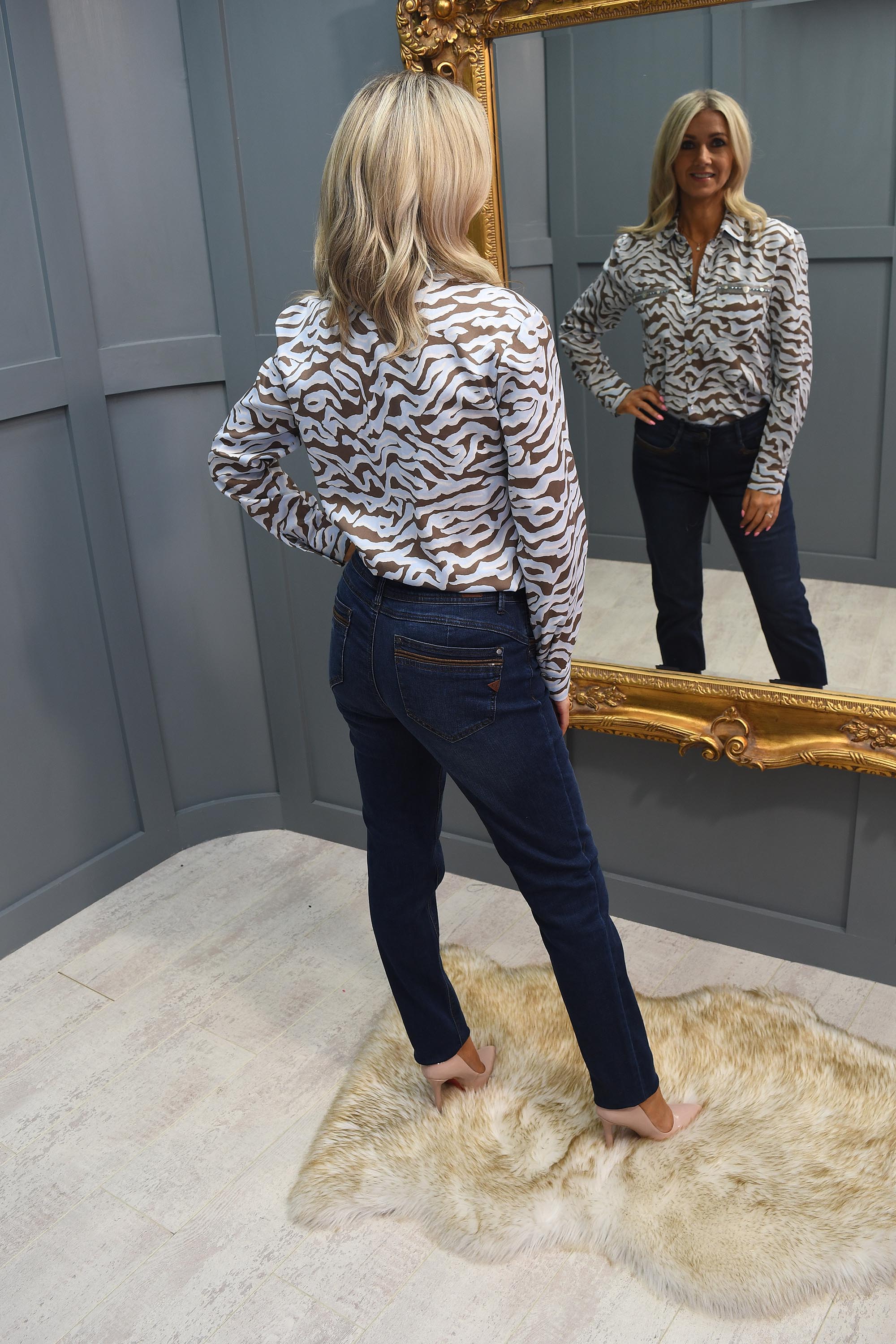 Our Model Rhonda wears size 10 & is 5ft 6”.