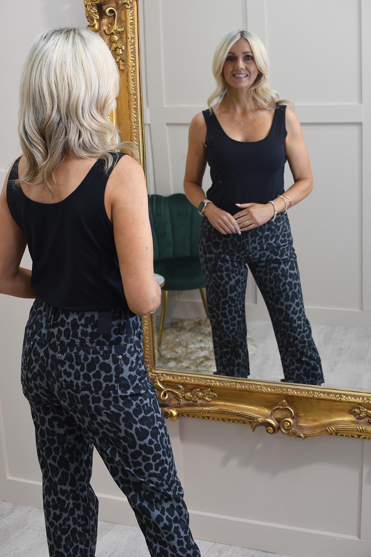 CRO Grey Leopard Print Straight Leg Jeans Description