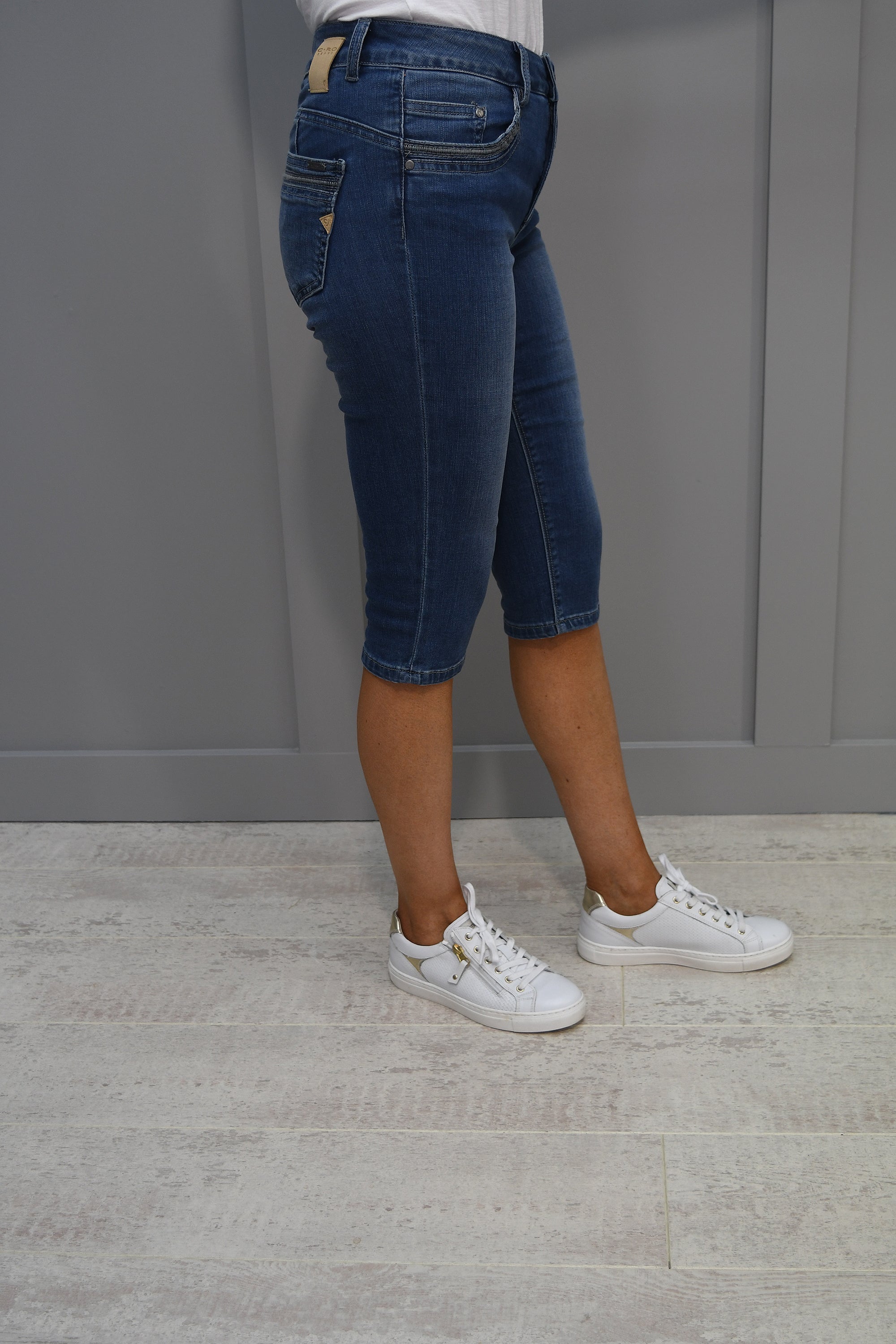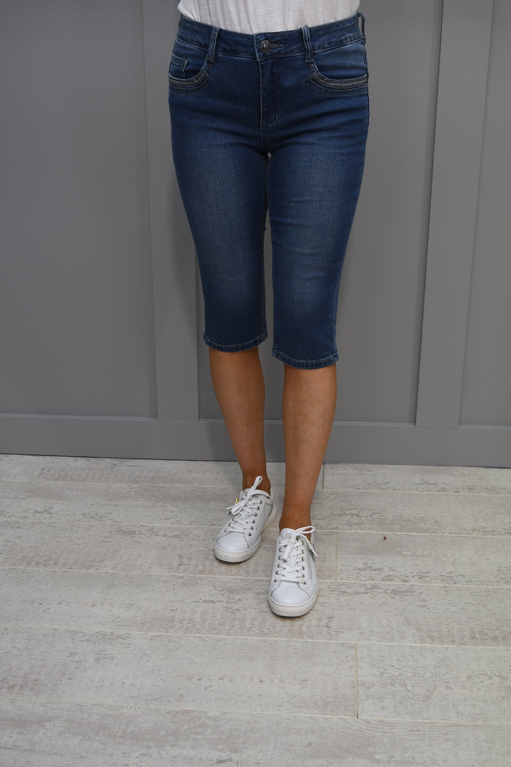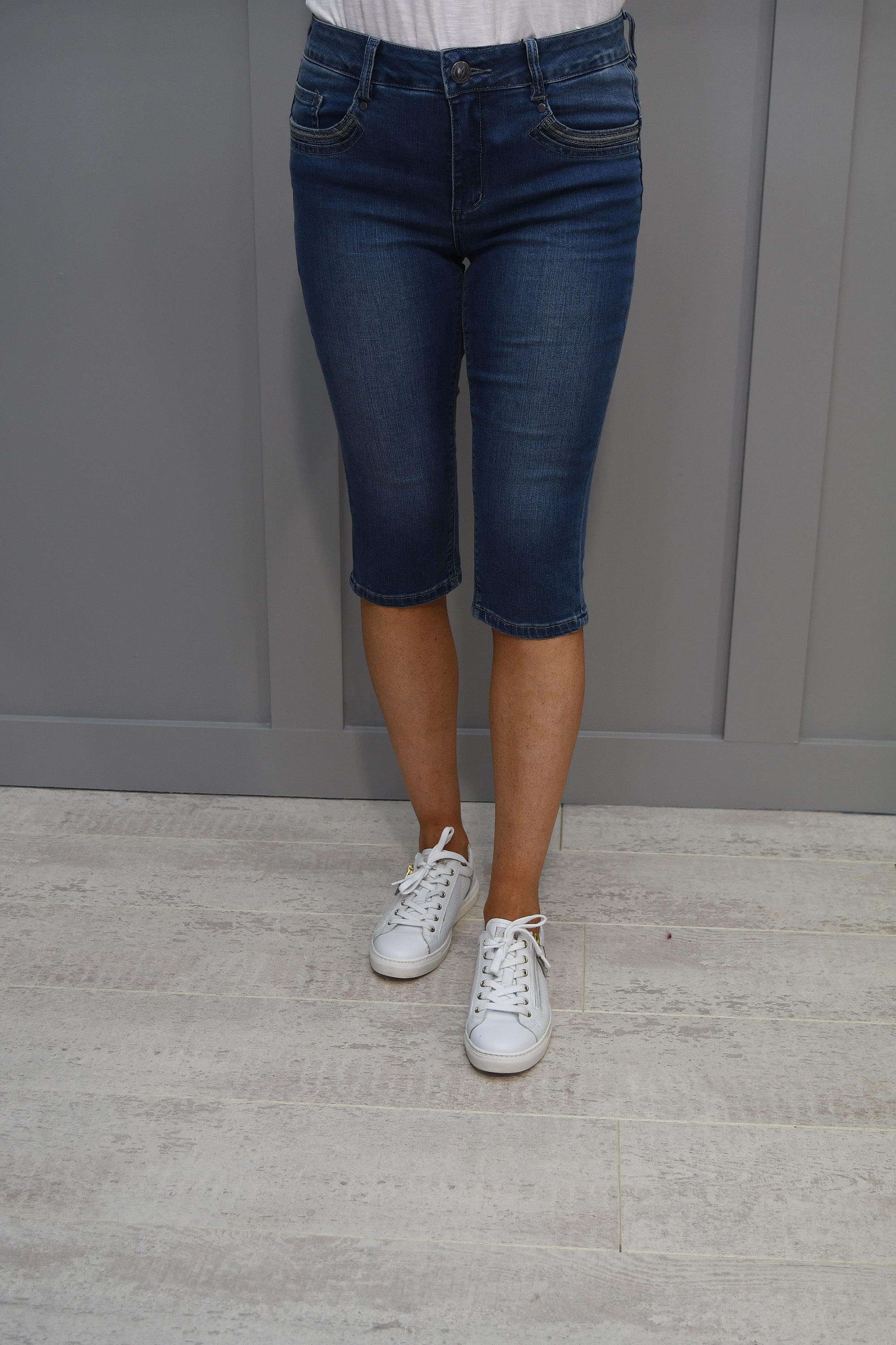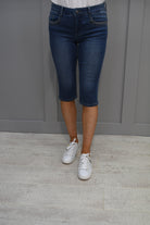 These classic denim shorts from CRO are figure-flattering, versatile, and so comfortable! The Magic Fit Skinny Shorts Denim Blue 7/8 Length live up to their name and can be paired with any top and shoe combination for summer. These dark blue denim shorts are cut below the knee and feature a dual zip-up and button closure, five pockets and belt loops.