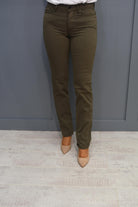 These wearable jeans from CRO can be styled with any top and shoe combination! The Magic Fit Straight Jeans Army Green are designed with a figure-flattering high waistline, dual button and zip-up front, five pockets and straight legs. These incredibly comfortable, dark green jeans can be dressed down with trainers or dressed up with chic heels!