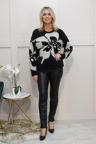 Darling Bold Oversized Flower Motif Jumper Black and Gold - DA25-703