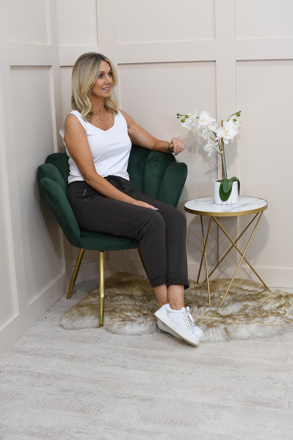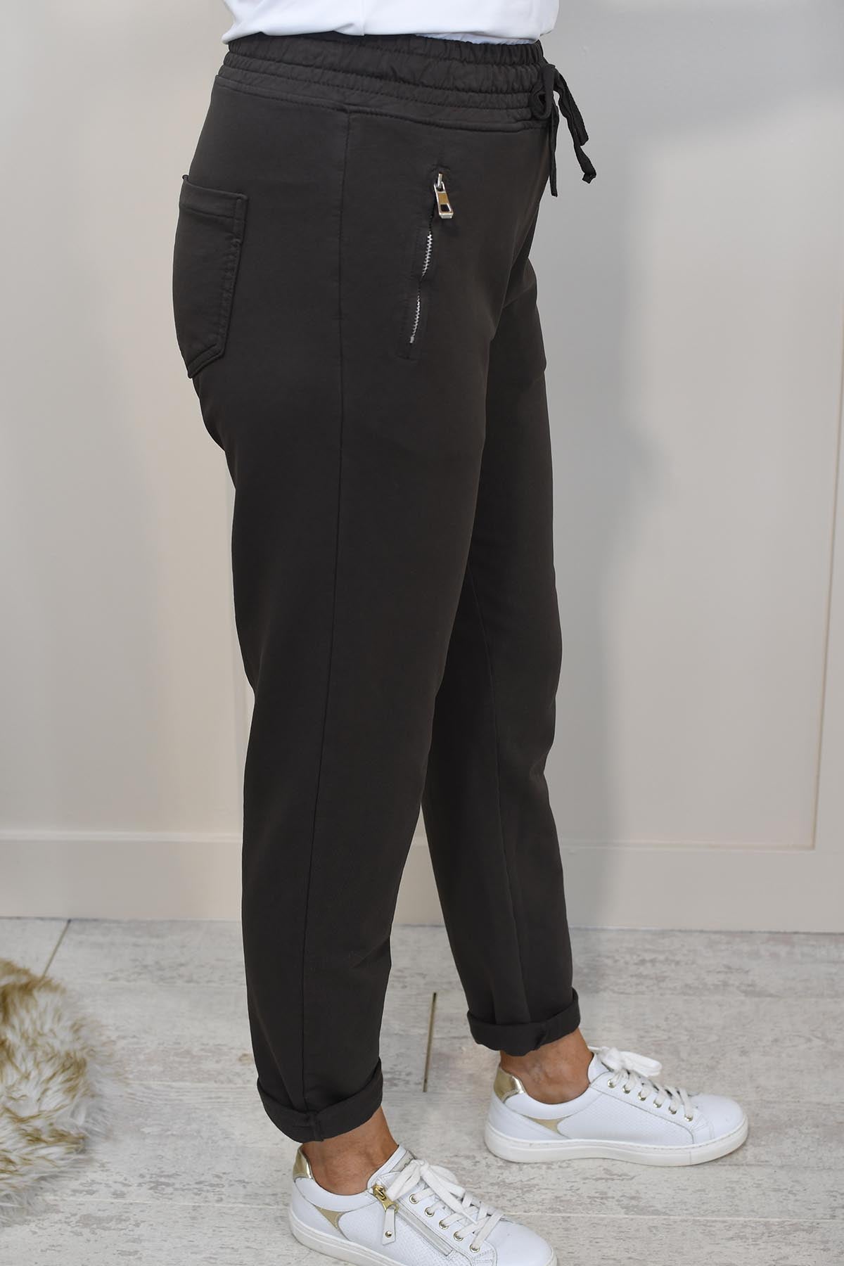 Decollage Trousers With Elasticated Waist & Pockets- Chocolate Brown 814136