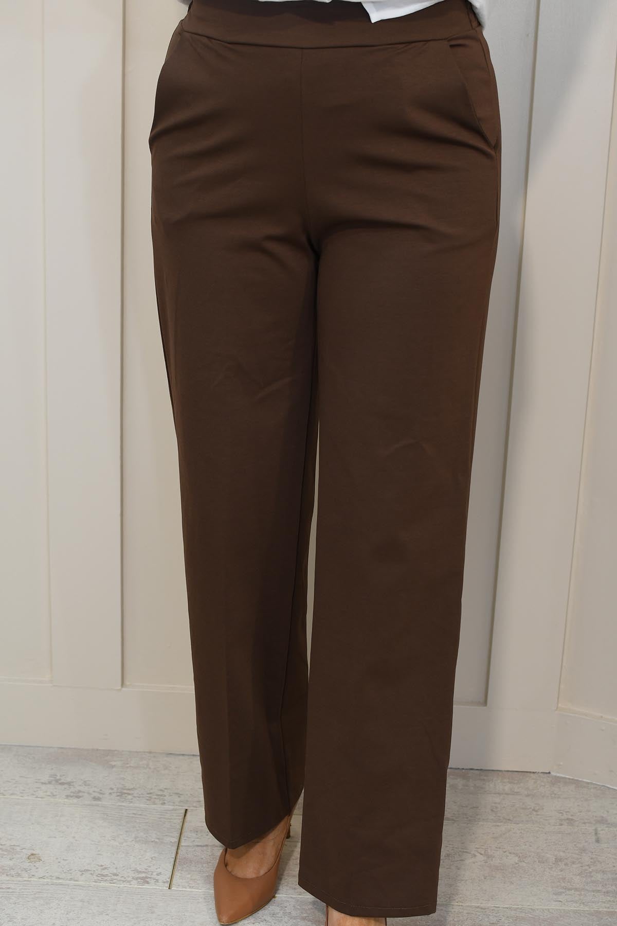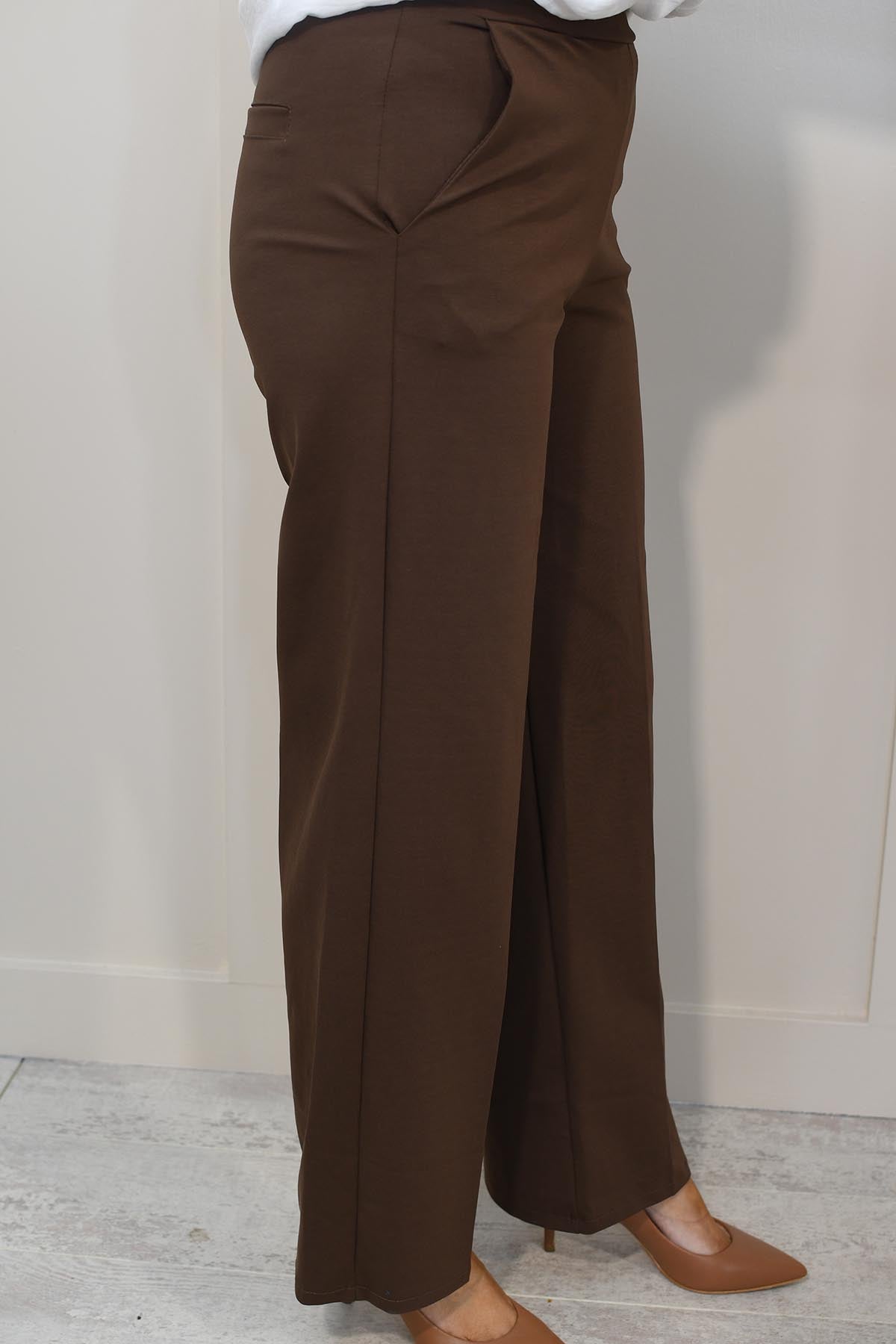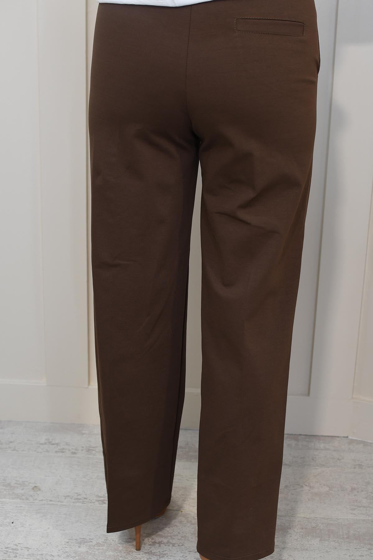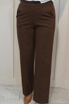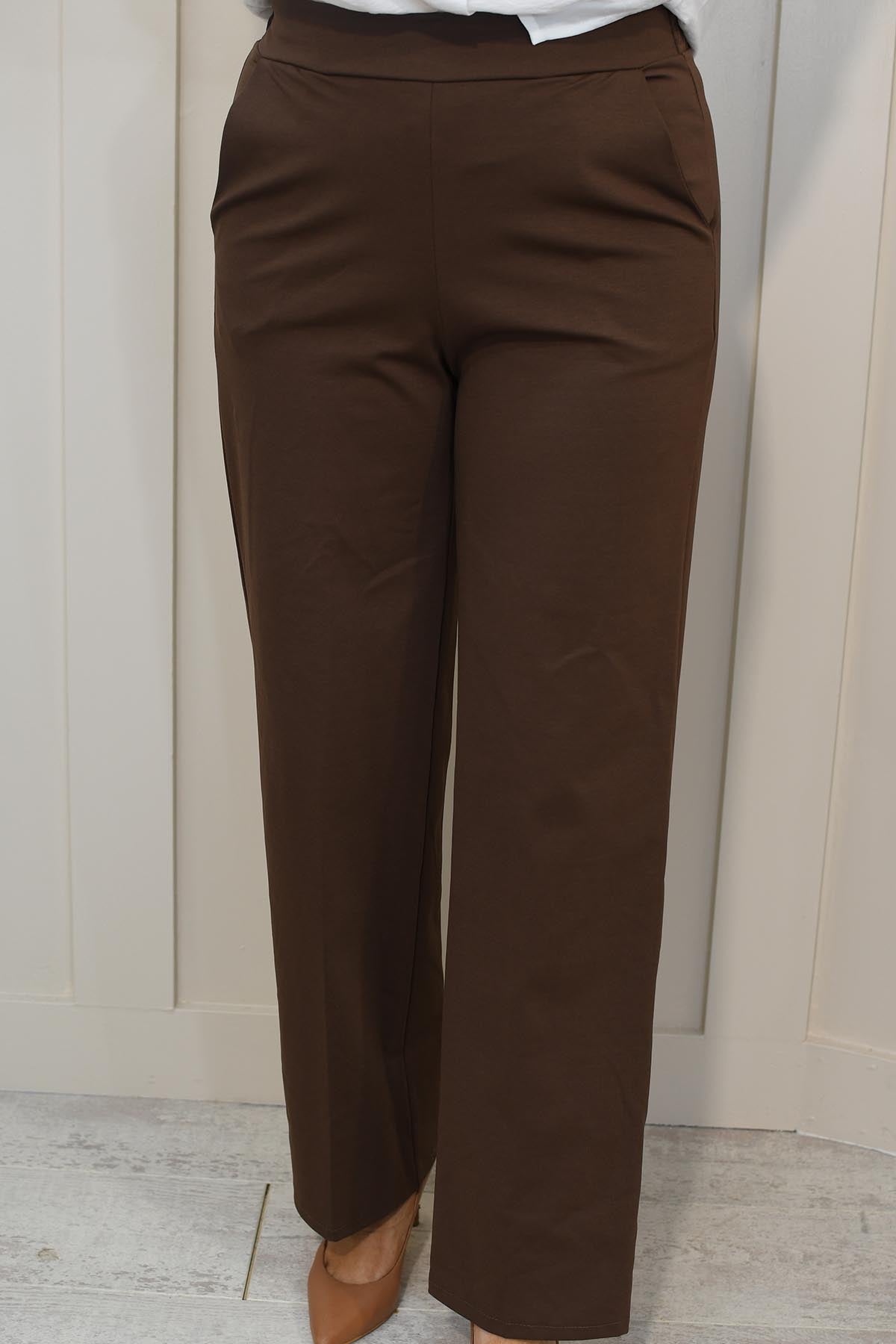 Decollage Wide Leg Trousers With Elasticated Waist- Chocolate Brown 2435