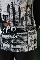 The top features a striking monochrome 'City Life' print that brings the vibrancy and energy of the urban landscape to life. The detailed cityscape, rendered in black and white, evokes a sense of modernity and dynamic movement, making it perfect for the fashion-forward individual who appreciates art and design.