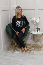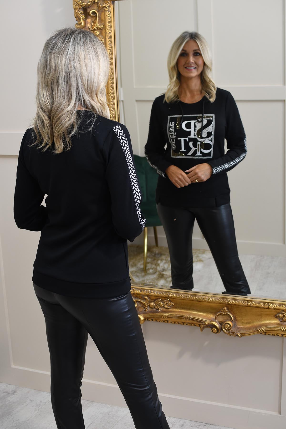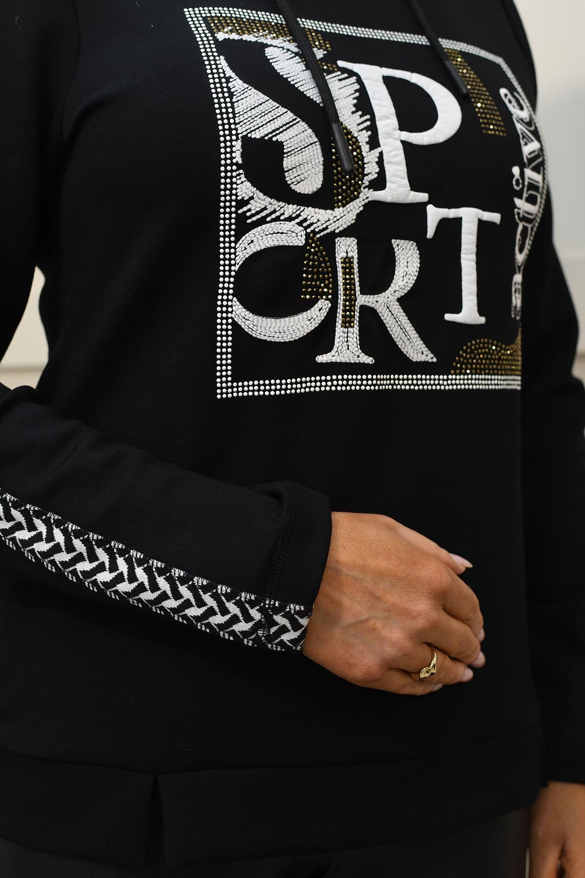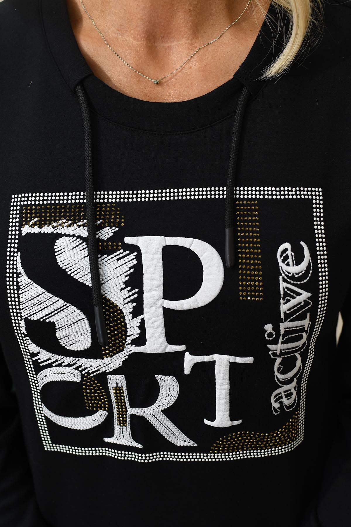 Dolcezza 'Sports Active' Slogan Sweatshirt- Black 75109