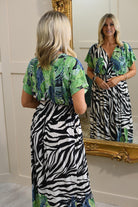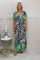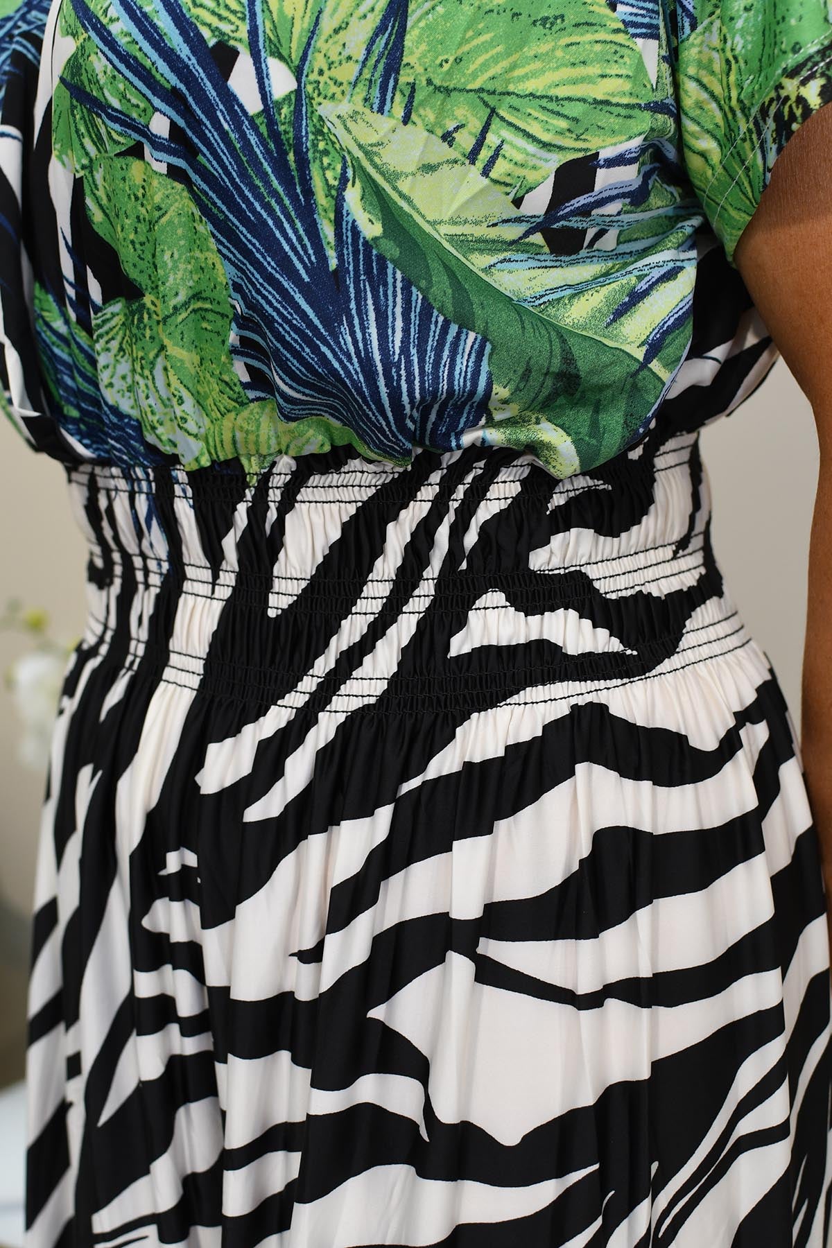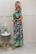 Elena Z Green Tropical & Zebra Print Magic Fit Maxi Dress -2237-18