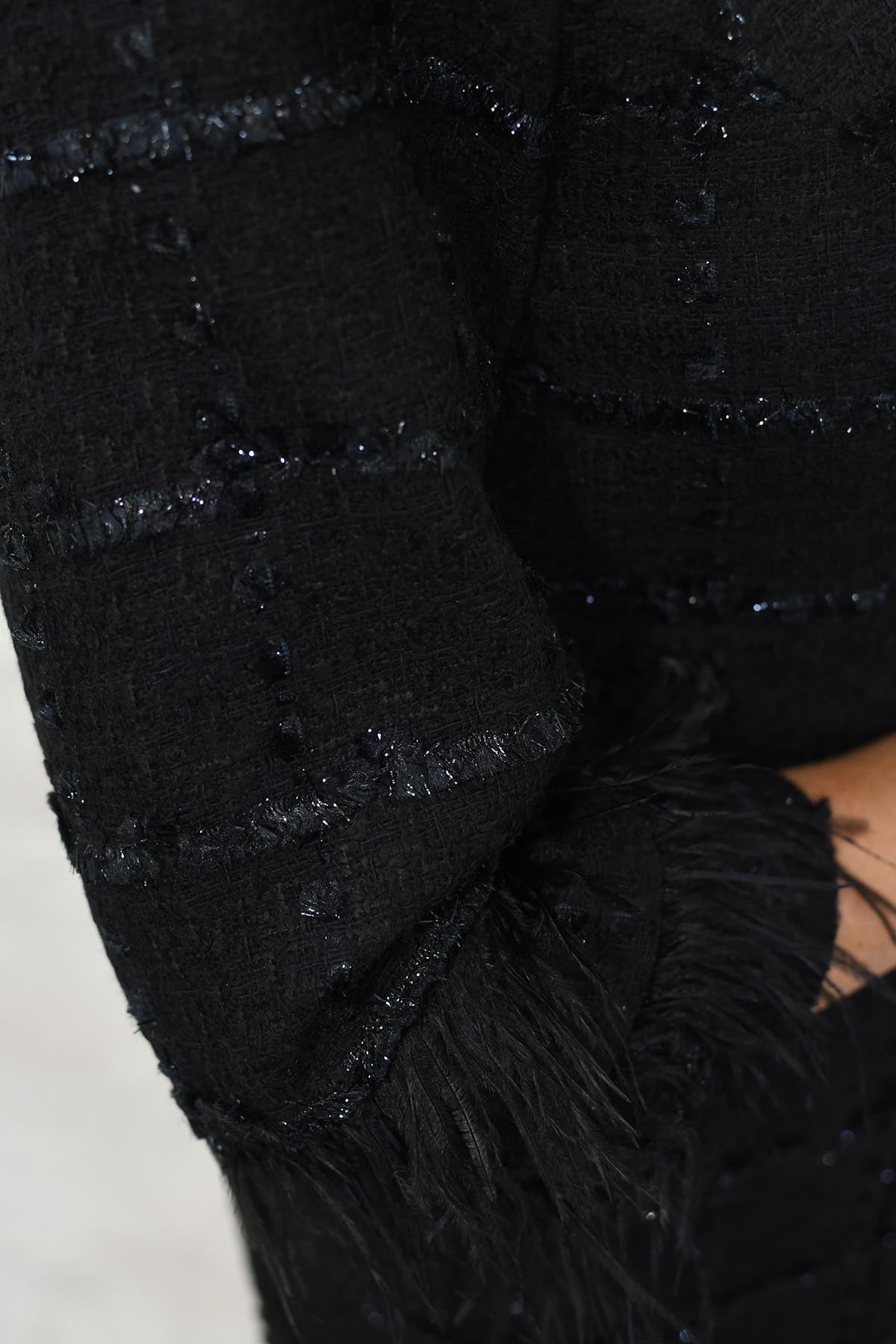 Ella Boo Black Tweed Short Dress With Feather Trim- E-24AW-2380-02