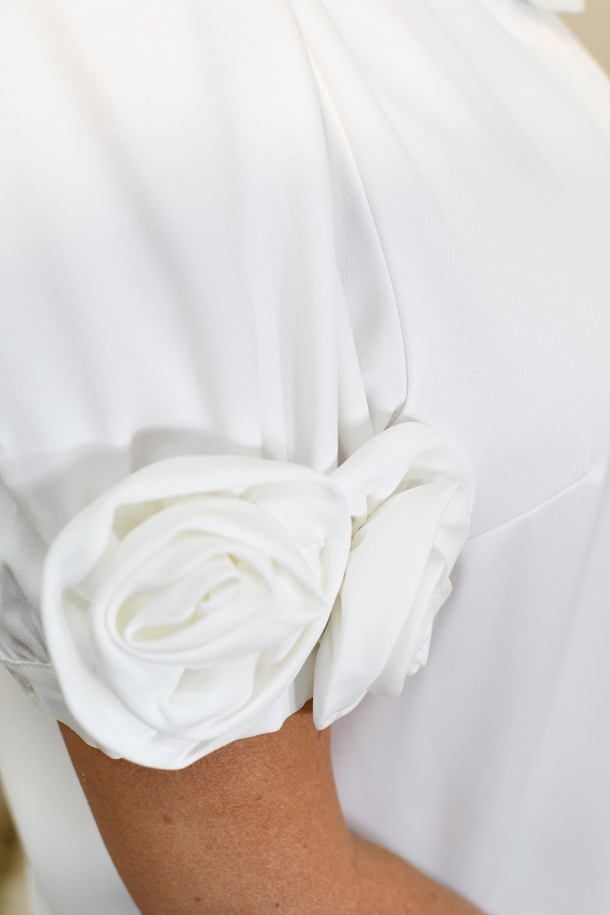 Elli White, Cream Blouse With Rosette Detail-23324YR