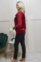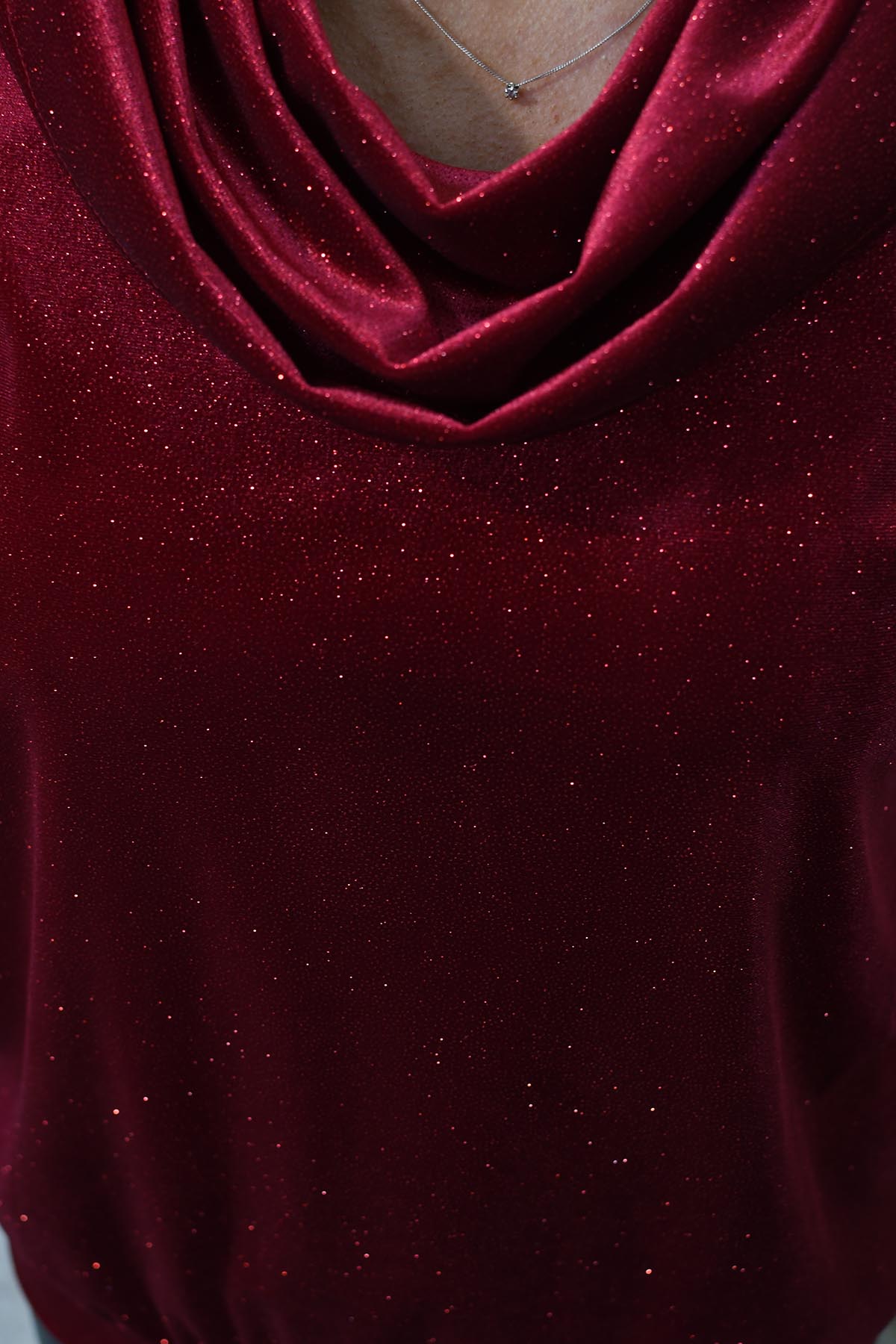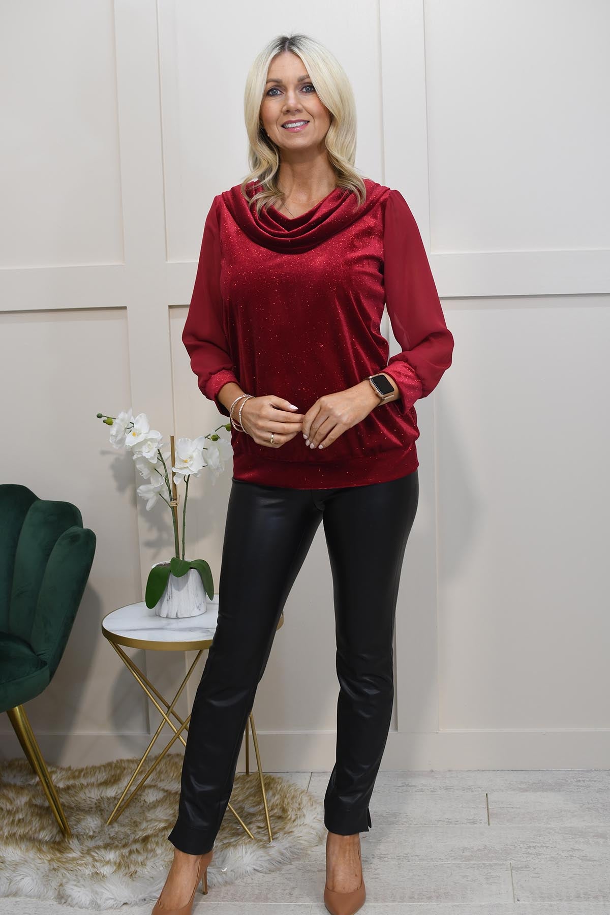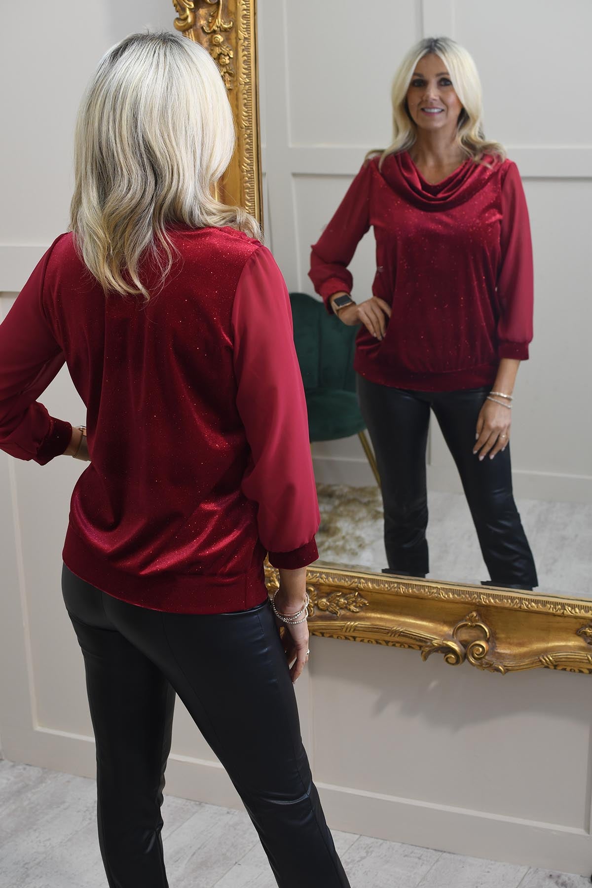 YEW Red Sparkle Cowl Neck Long Sleeve Top - 2647 Camila