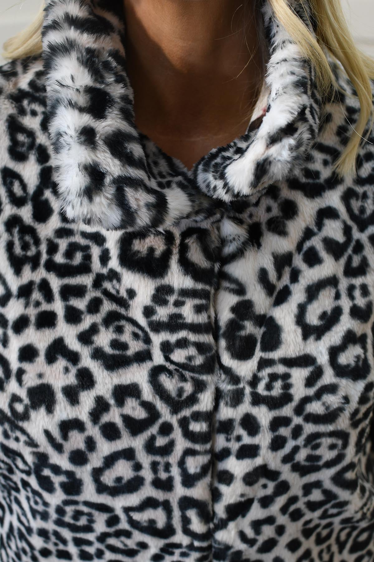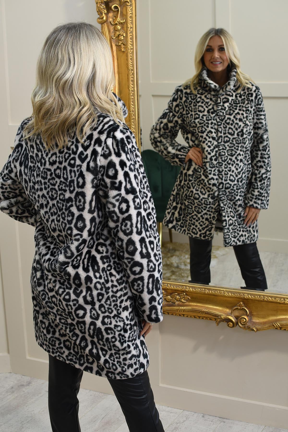 Frieda & Freddies Faux Fur Leopard Print Coat- Blush & Black 5820 266