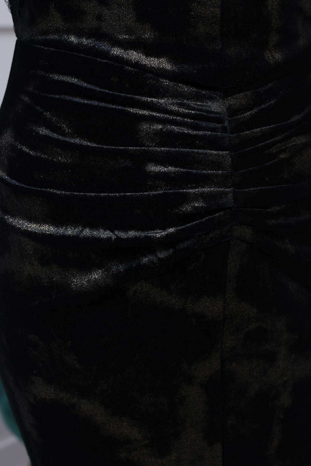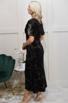 Girl In Mind Black And Gold Ruched Velvet Midi Dress Description
