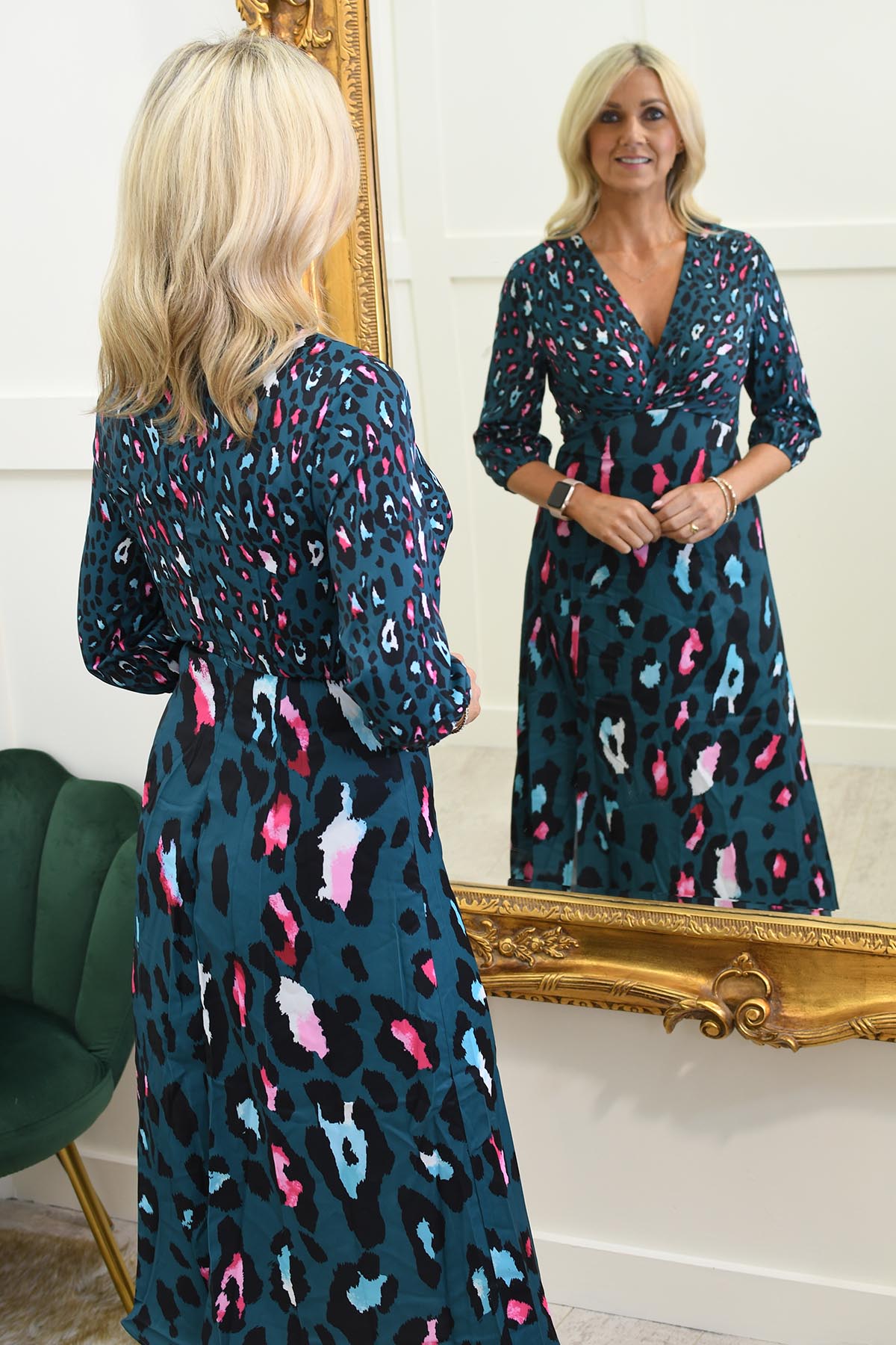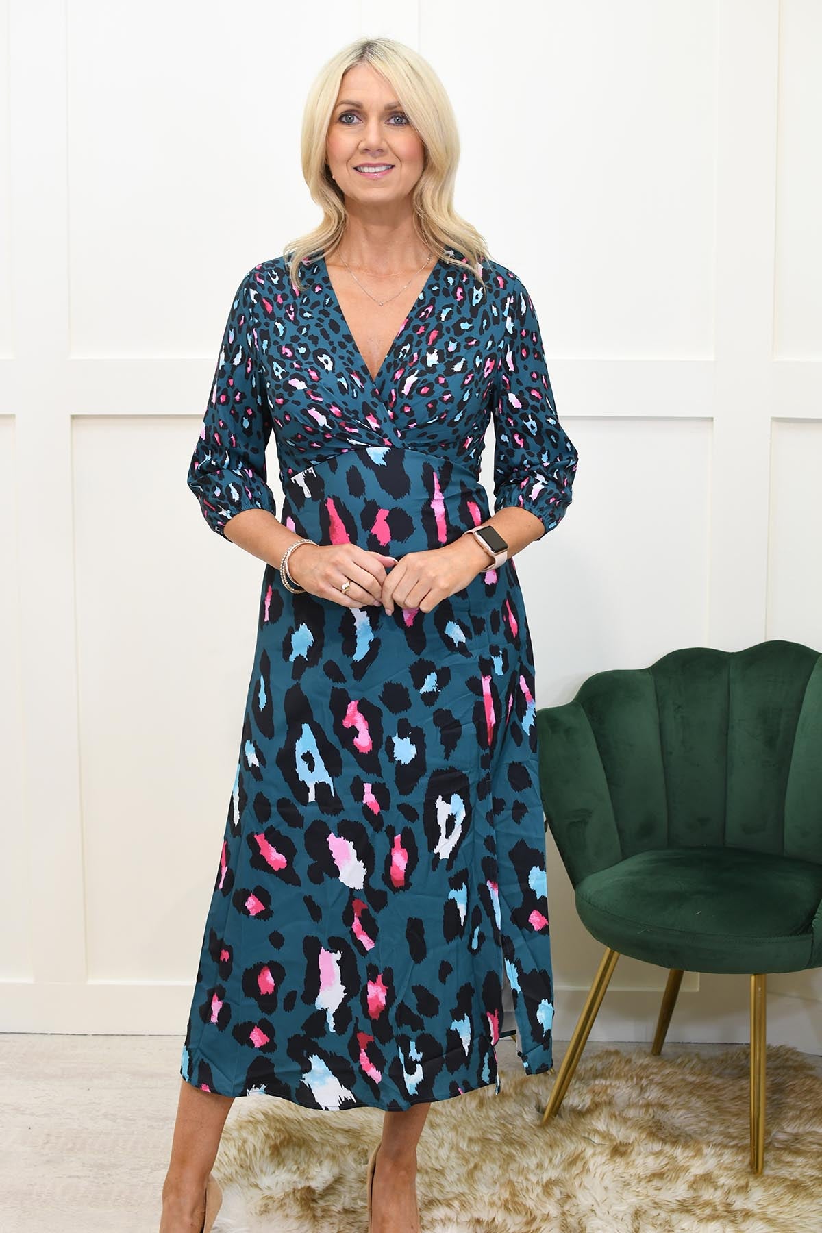 Girl In Mind Mixed Green Animal Midi Dress- Lydia