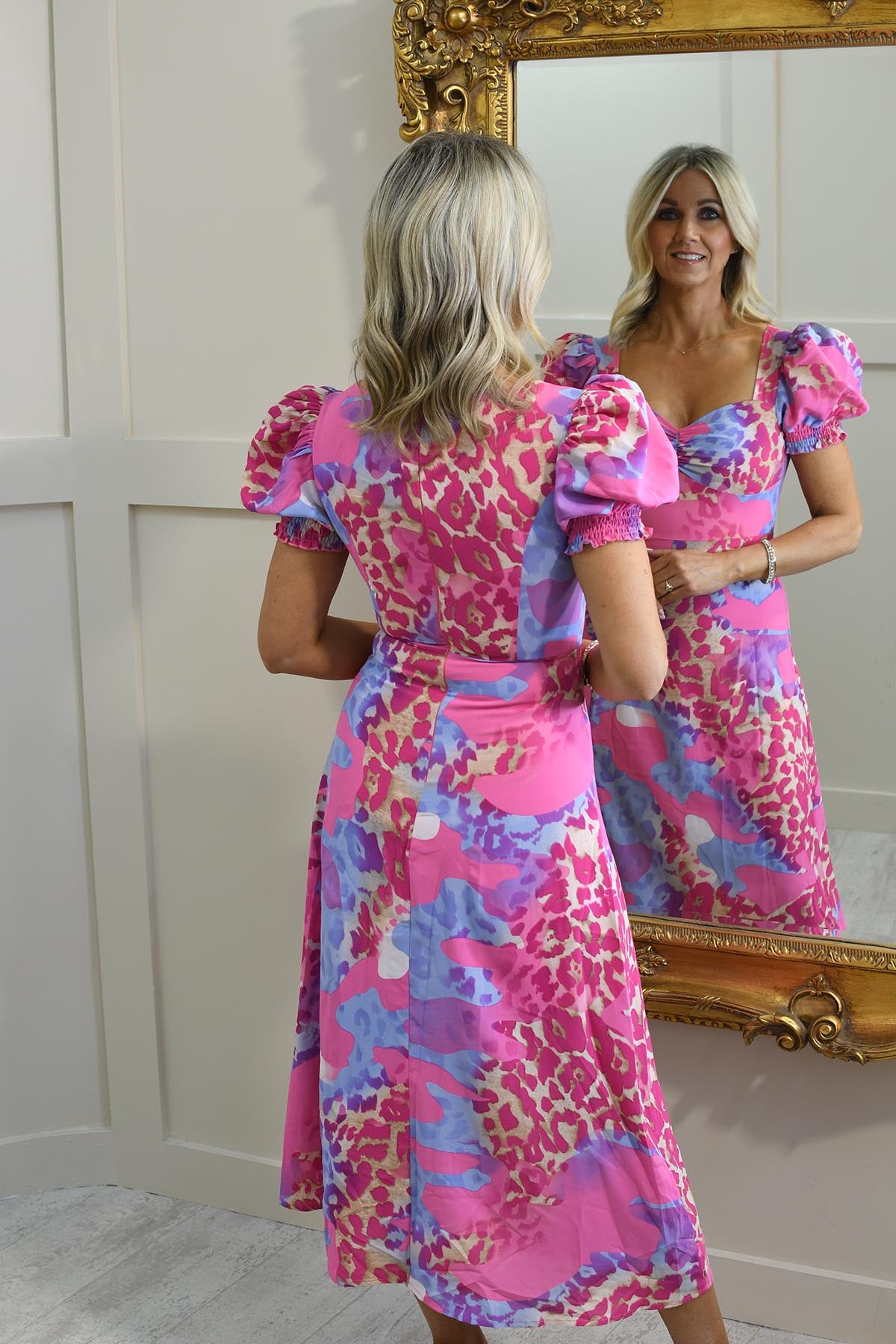 Girl In Mind Pink Animal Sweetheart Midi Dress Description