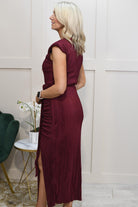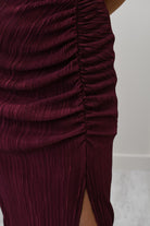 Girl In Mind Wine Ruched Seamed Midi Dress- Elena