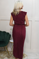 Girl In Mind Wine Ruched Seamed Midi Dress Description
