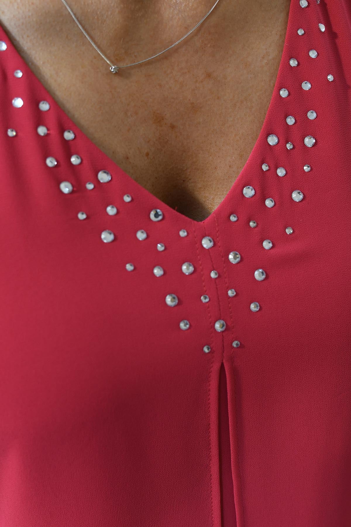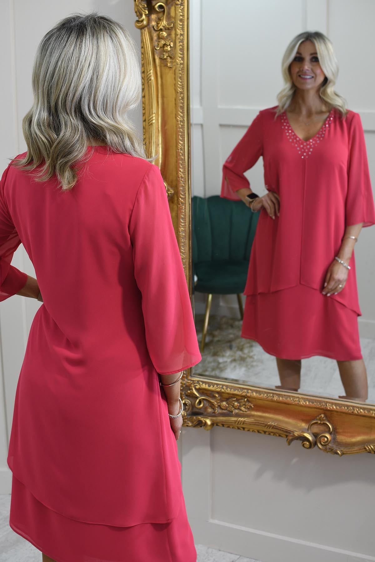 Godske Hot Pink Dress With V Neck & Diamanté Detail Description