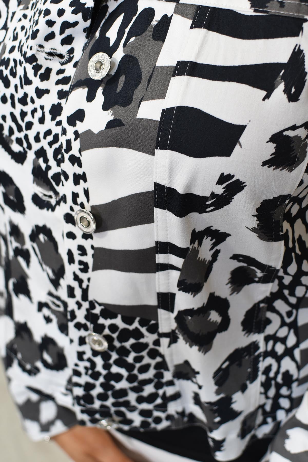 Elevate your casual wardrobe with the I'CONA Black & Taupe Mixed Animal Print Jacket With Diamante Detail. Crafted from a comfortable blend of 97% cotton and 3% elastane, this statement jacket offers a flattering fit with just the right amount of stretch. The eye-catching black and taupe mixed animal print adds bold personality, while subtle diamante embellishments bring a touch of glam. Perfect for layering, this lightweight jacket transitions effortlessly from day to night. Ideal for those seeking stylish outerwear with a luxurious twist. Animal print jacket, cotton stretch jacket, women’s fashion jacket—a must-have piece.