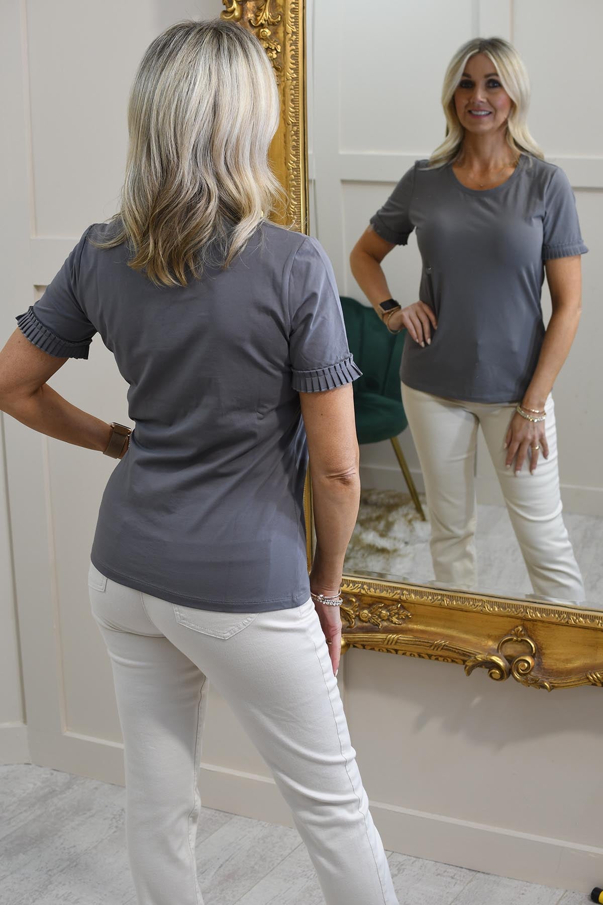I'CONA Taupe Top With Frill Sleeve Detail -64322 60290 97
