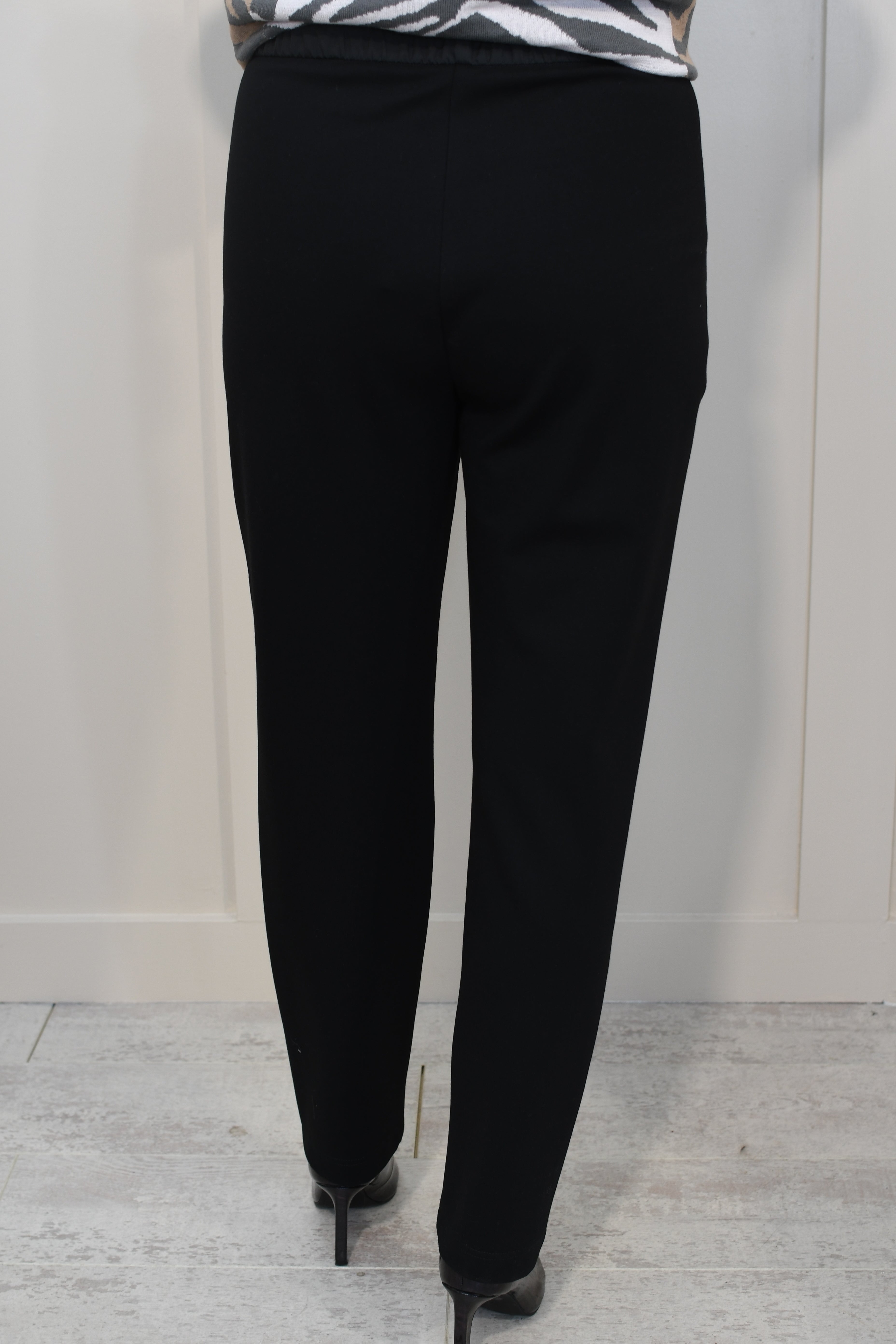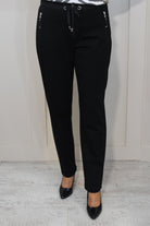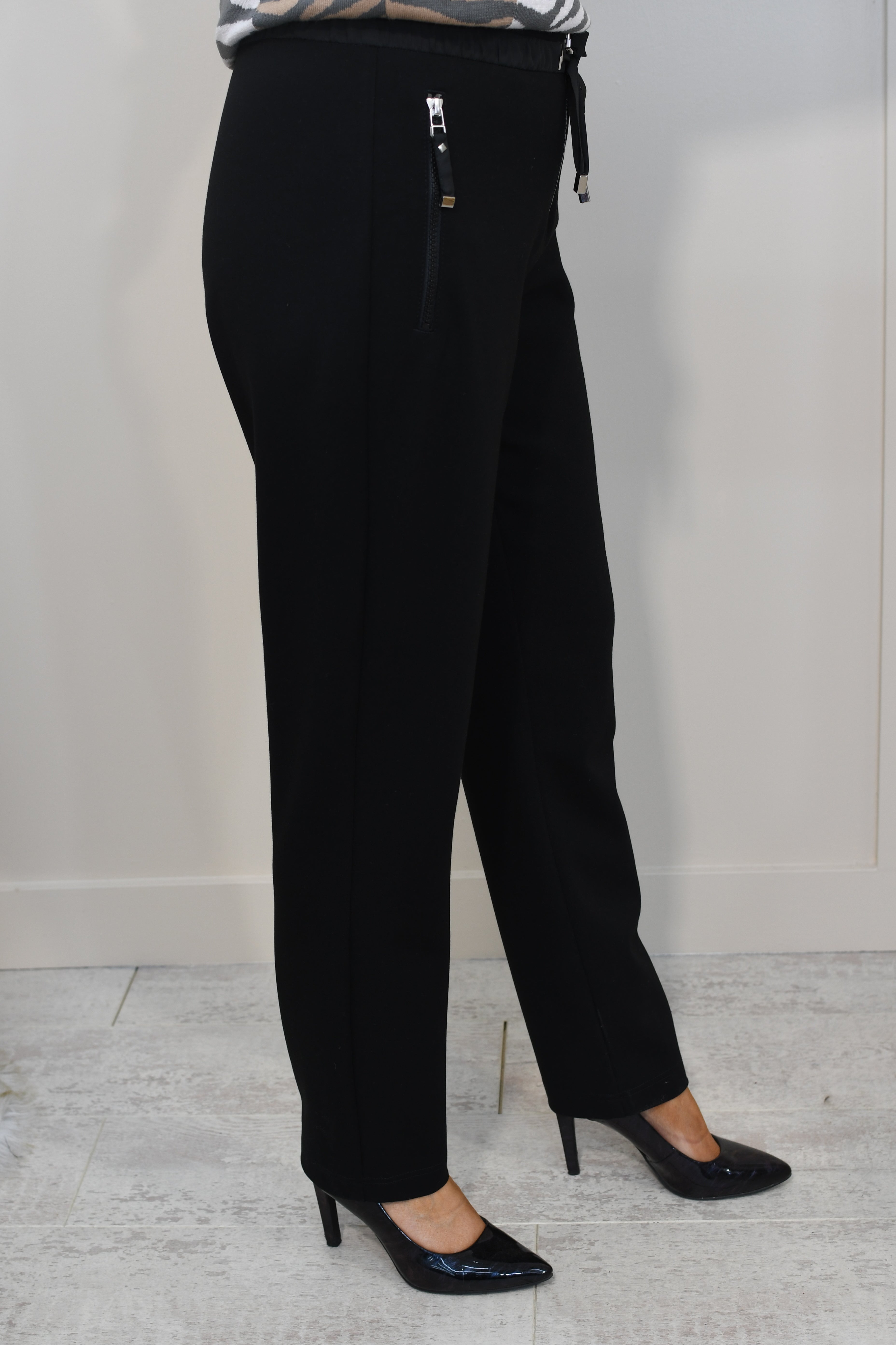 Combine comfort and style with the I’CONA Trousers in classic black, designed with a modern drawstring waist. Crafted from 65% viscose, 30% polyamide, and 5% elastane, they offer a soft, breathable feel with stretch for ease of movement and a flattering fit. The relaxed yet polished silhouette makes them perfect for both casual days and smart-casual occasions, while the adjustable waist ensures comfort throughout the day. Easy to pair with blouses, knitwear, or casual tops, these trousers are a versatile wardrobe essential for women who love practical fashion that doesn’t compromise on style.