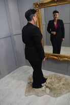 The blazer is designed in a timeless and versatile black colour, offering a polished and refined look suitable for a variety of occasions.