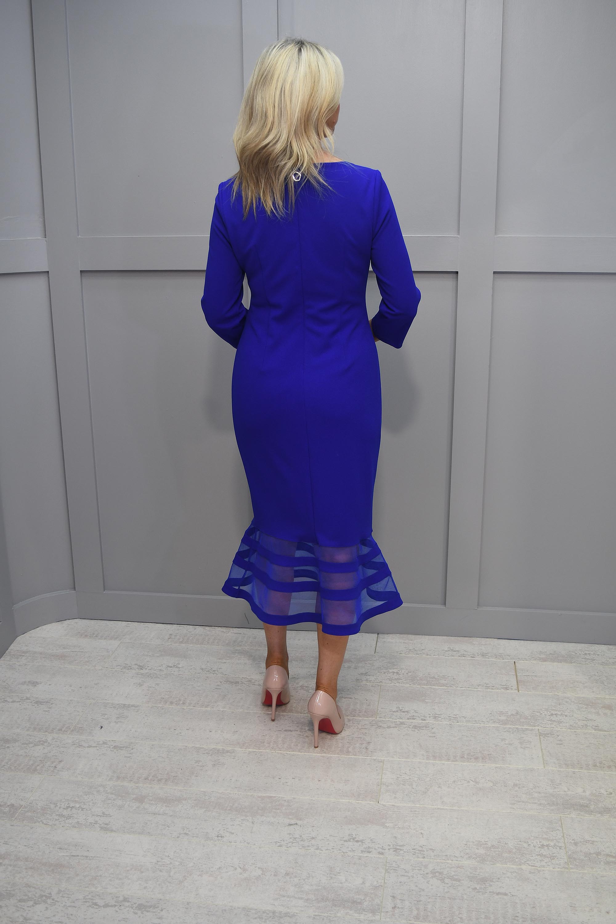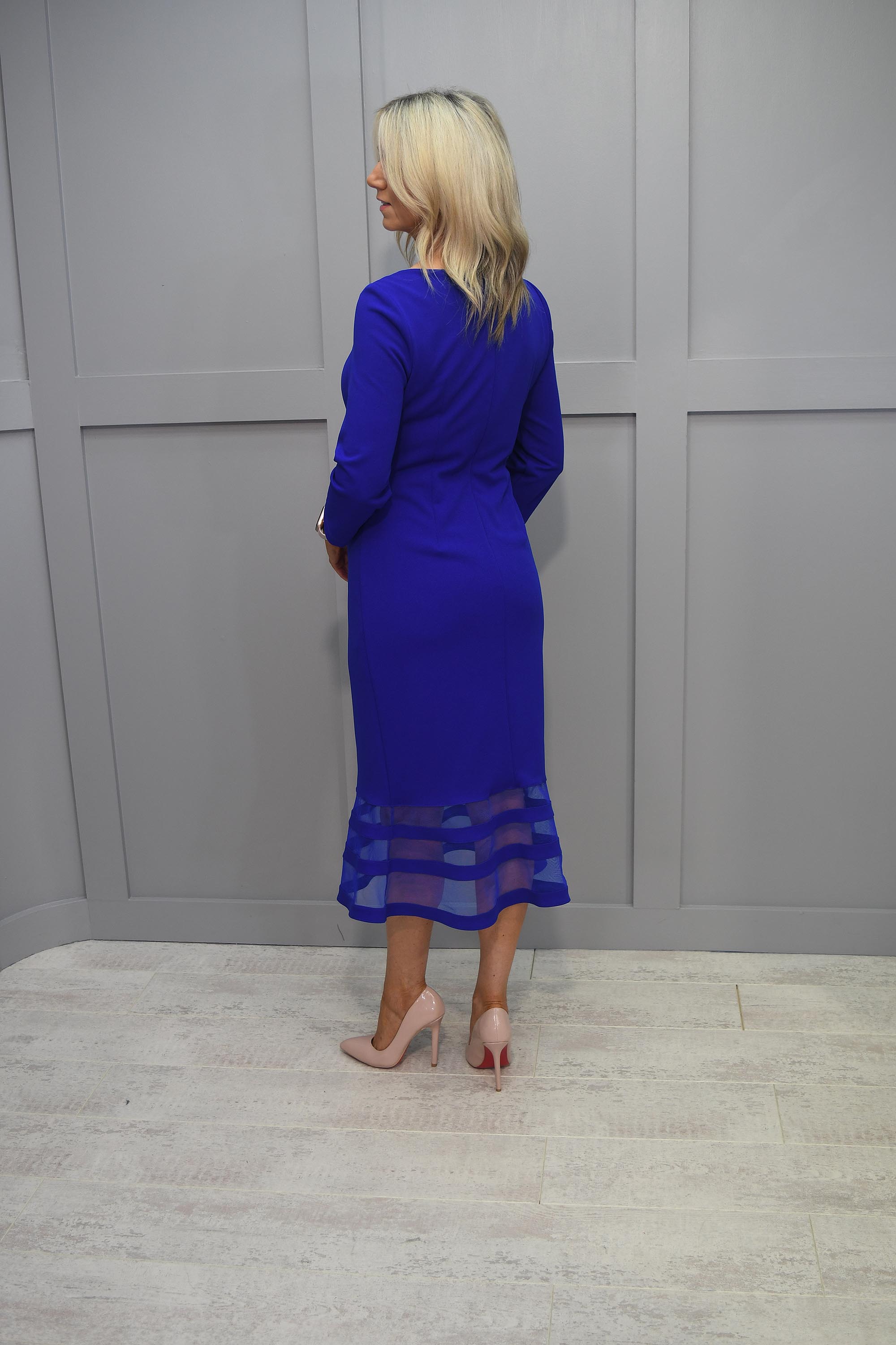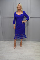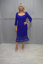 Joseph Ribkoff Royal Blue Fishtail Dress With Sweetheart Neckline & Mesh Detail-233706 2922