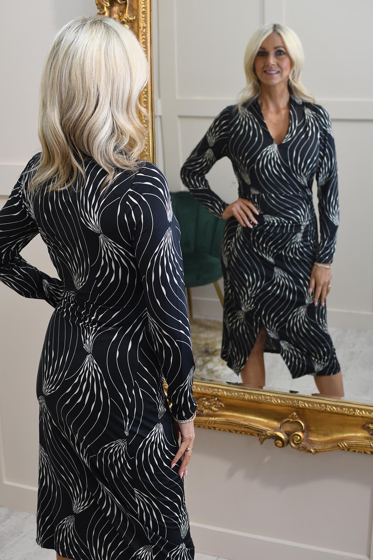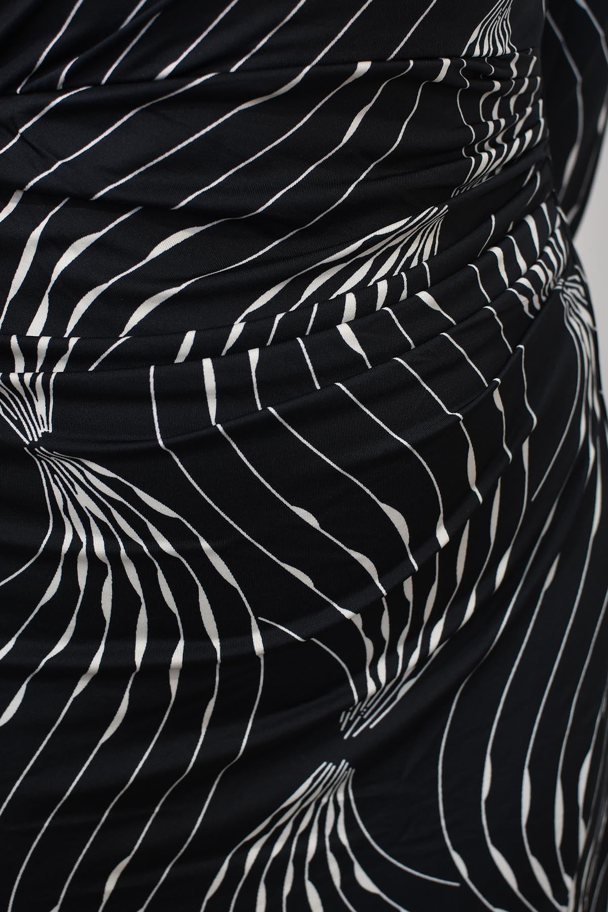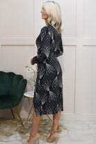 K.Design Black & Beige Abstract Print V Neck Dress- Z106