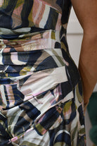 K.Design Navy, Khaki & Cream Dress With Ruched Side Detail - P995