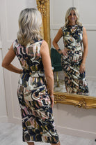 Step into effortless elegance with the K.Design Navy, Khaki & Cream Dress. This stunning dress combines a chic colour palette of navy, khaki, and cream, offering a sophisticated yet modern look. The ruched side detail enhances the dress with a flattering fit, creating a stylish and slimming silhouette. Made from high-quality, breathable fabric, this dress ensures comfort throughout the day, making it perfect for both casual and formal occasions. Whether you're heading to a brunch or an evening event, this versatile dress will keep you looking polished and confident.