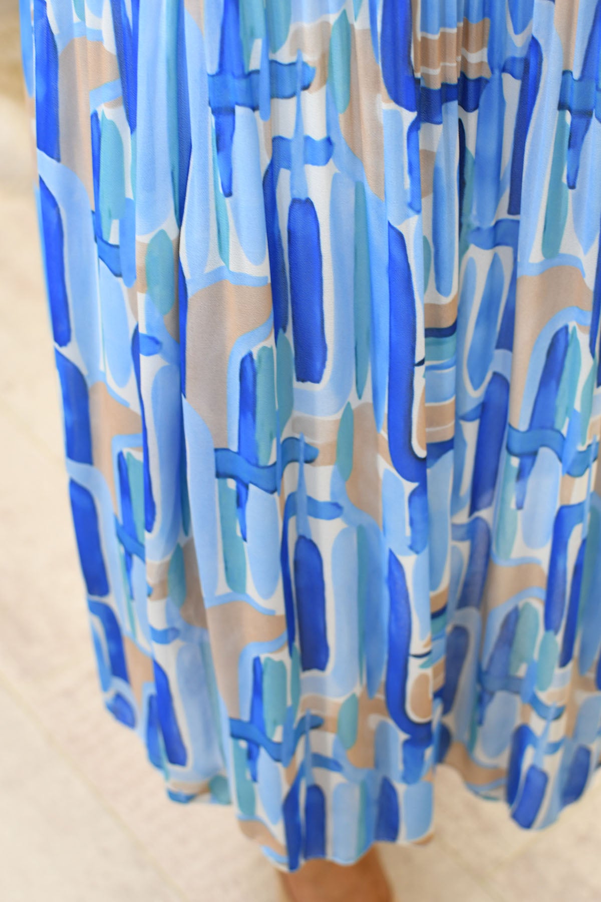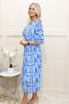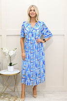 Kyla - Modern Mosaic Print Plisse Dress - Sky Blue - 6025