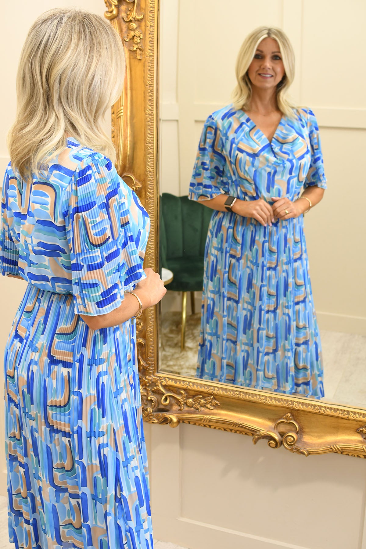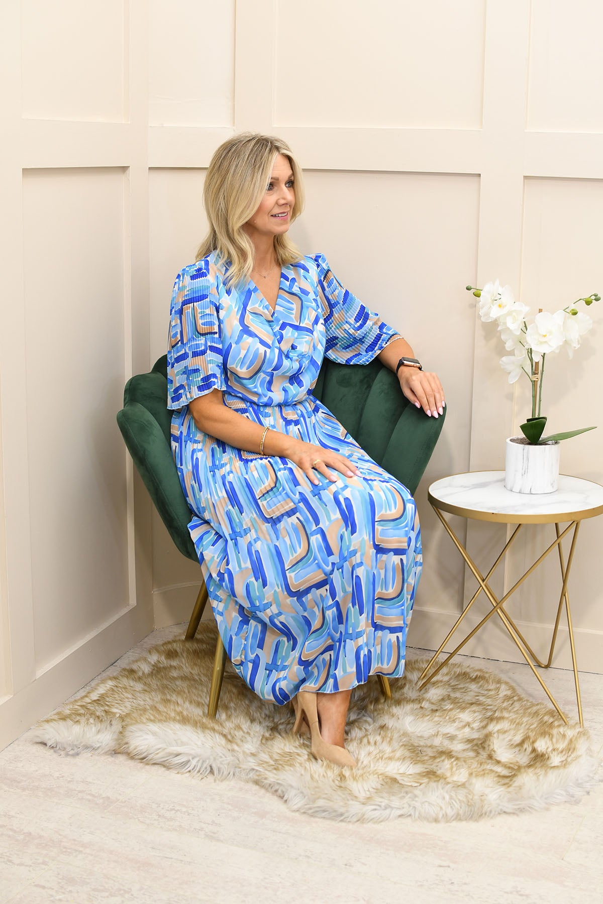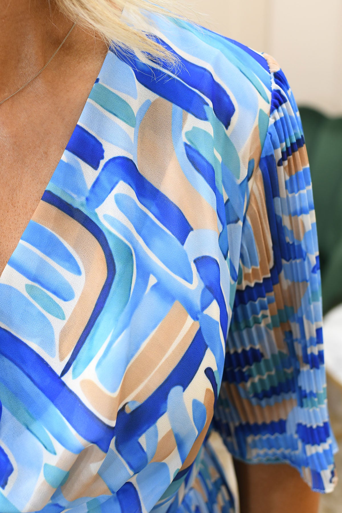 Make a bold statement with this sky blue modern mosaic print plissé dress, designed to combine artistic style with effortless comfort. Crafted from a soft, stretch-enhanced blend of 95% viscose and 5% elastane, it offers a smooth, breathable feel with flexible movement for all-day wear. The plissé texture adds beautiful dimension and flow, while the striking mosaic-inspired print creates a contemporary, eye-catching look. Lightweight and flattering, this dress transitions seamlessly from daytime styling to evening occasions.