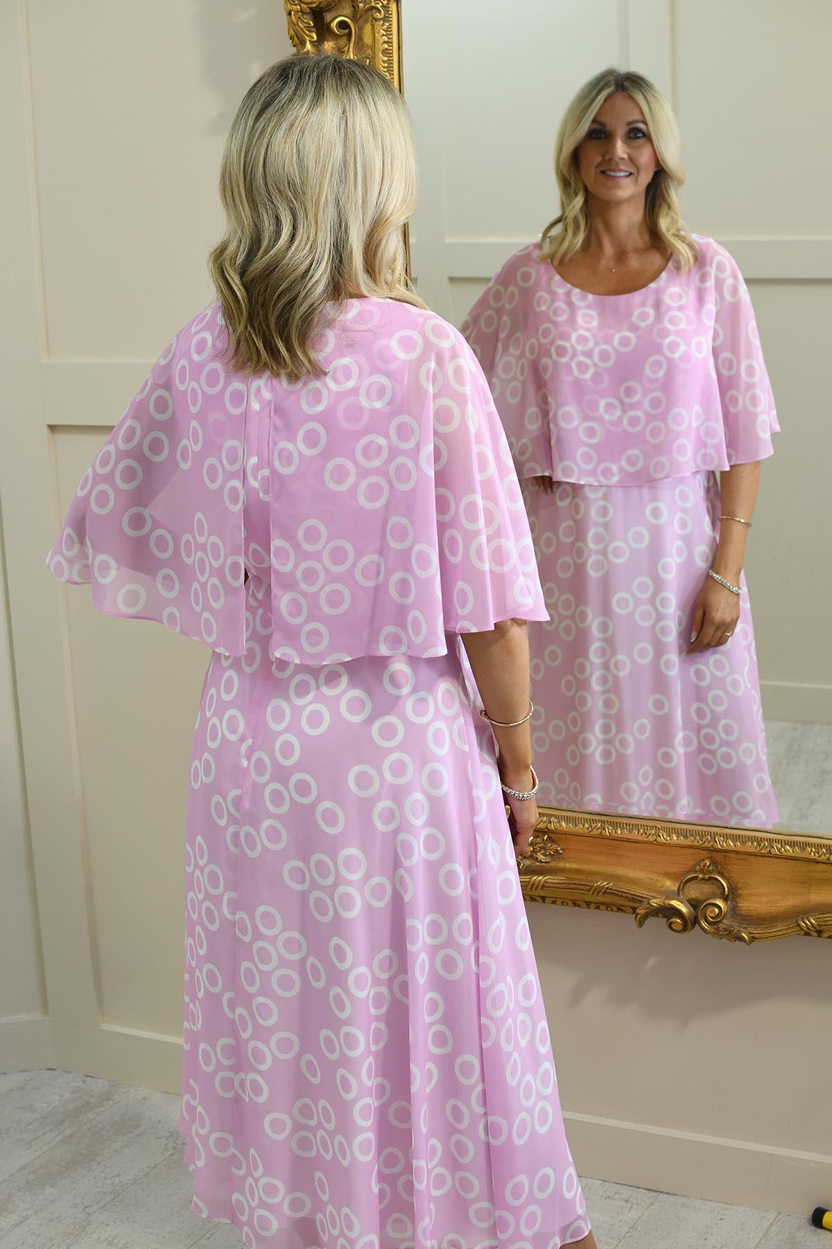 Lizabella Baby Pink Circle Print Dress -L-25SS-2017-52