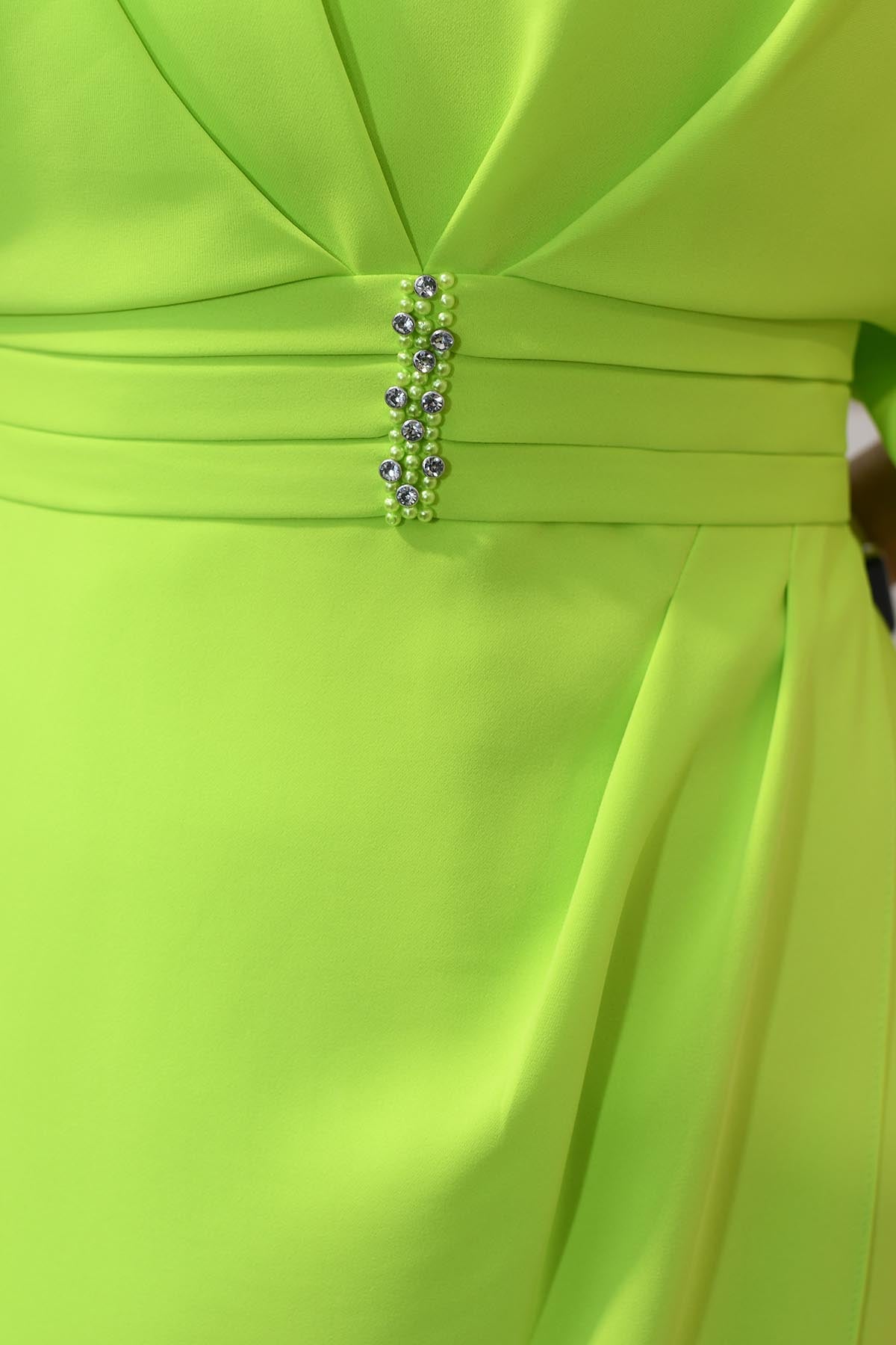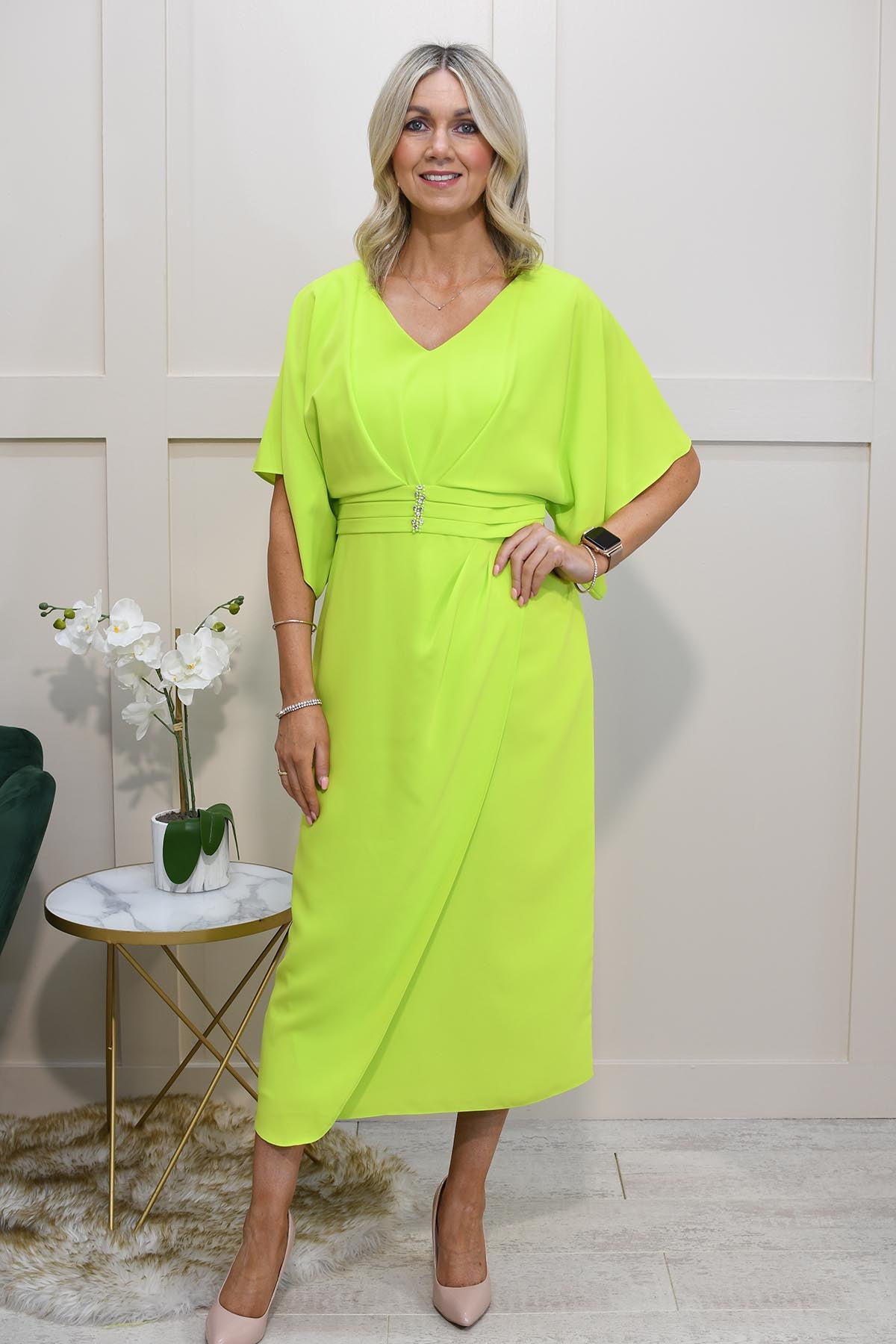 Lizabella Lime Green V Neck Dress With Waterfall Sleeve - L-25SS-2044-40