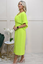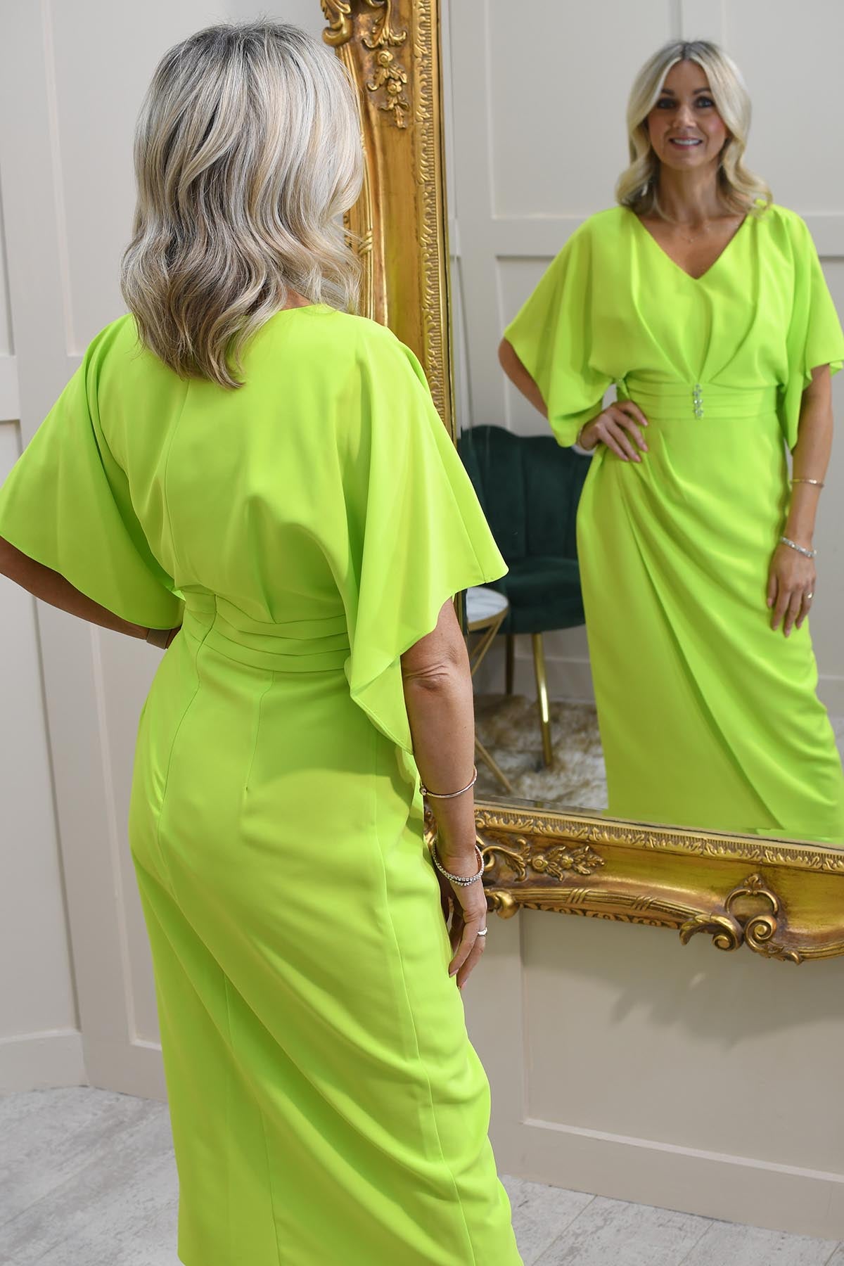 Add a burst of vibrant colour to your wardrobe with the Lizabella Lime Green V-Neck Dress. Designed to turn heads, this eye-catching dress features a striking lime green shade that exudes confidence and energy. The flattering V-neckline enhances your natural shape, while the waterfall sleeve detail adds a touch of elegance and movement. Perfect for those who love to stand out, this dress offers both style and comfort in a chic, modern design