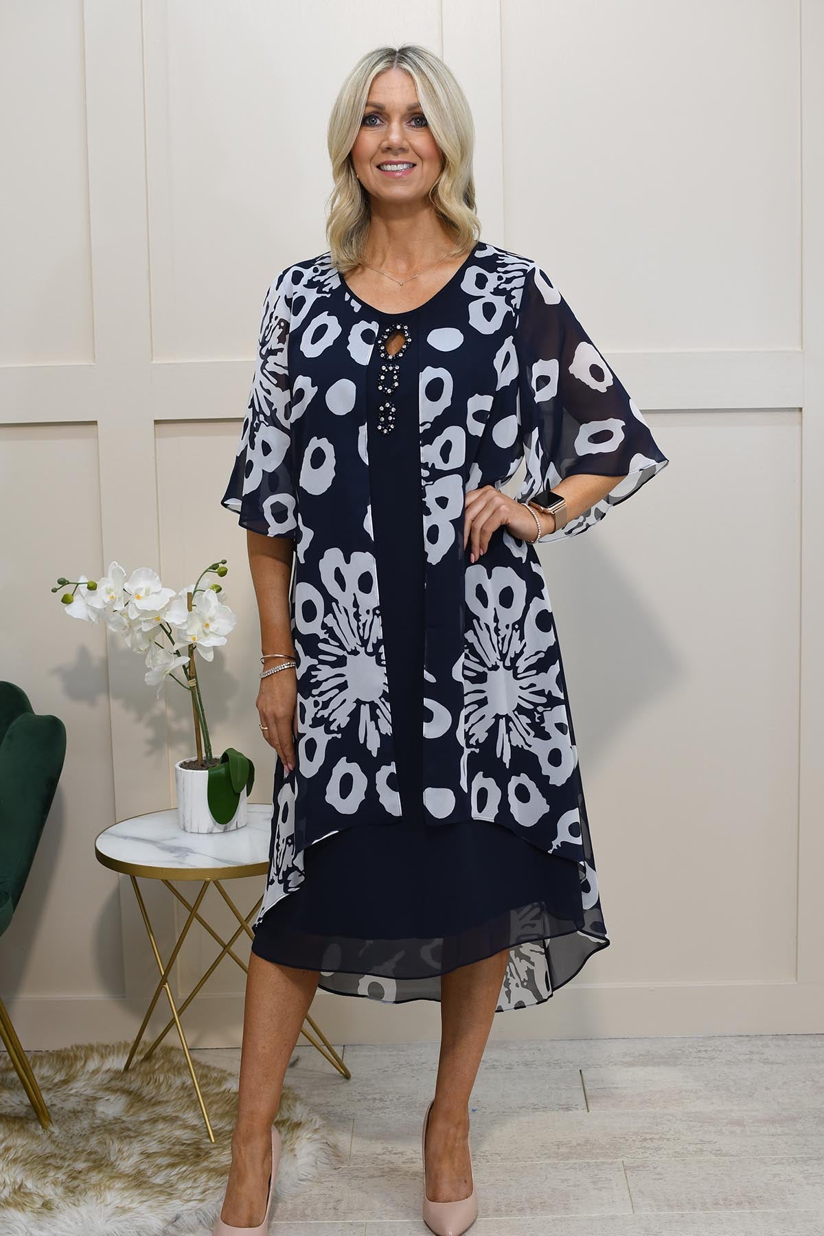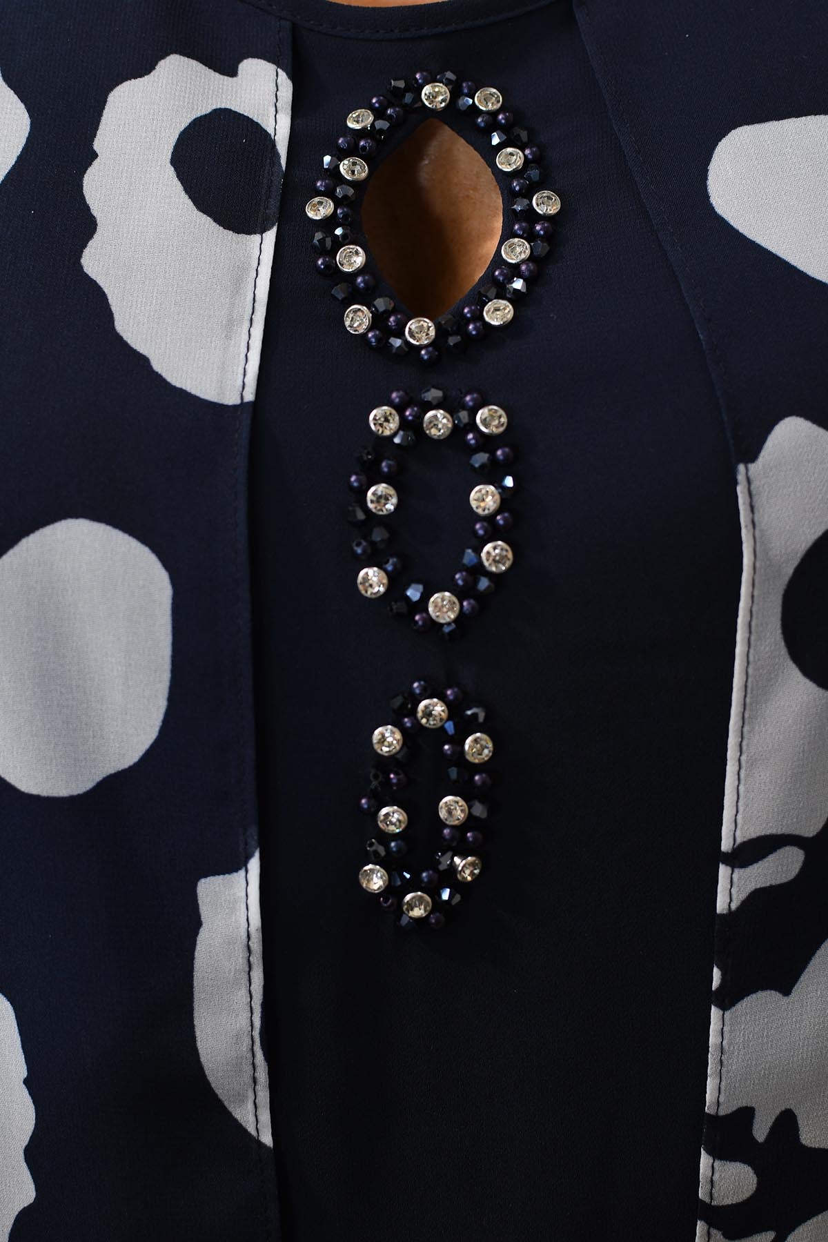 Lizabella Navy Dress With Overlay & Diamante Keyhole Detail-L-25SS-2107-03