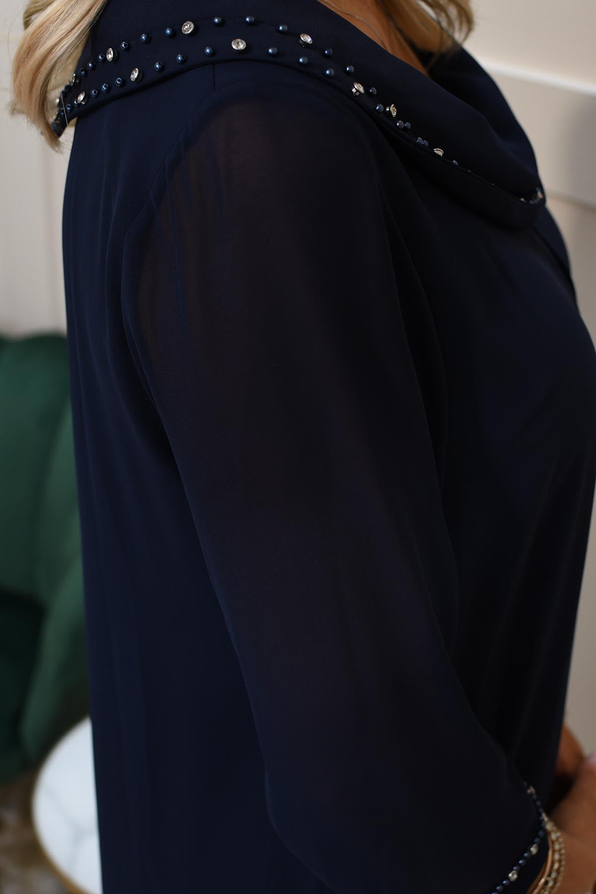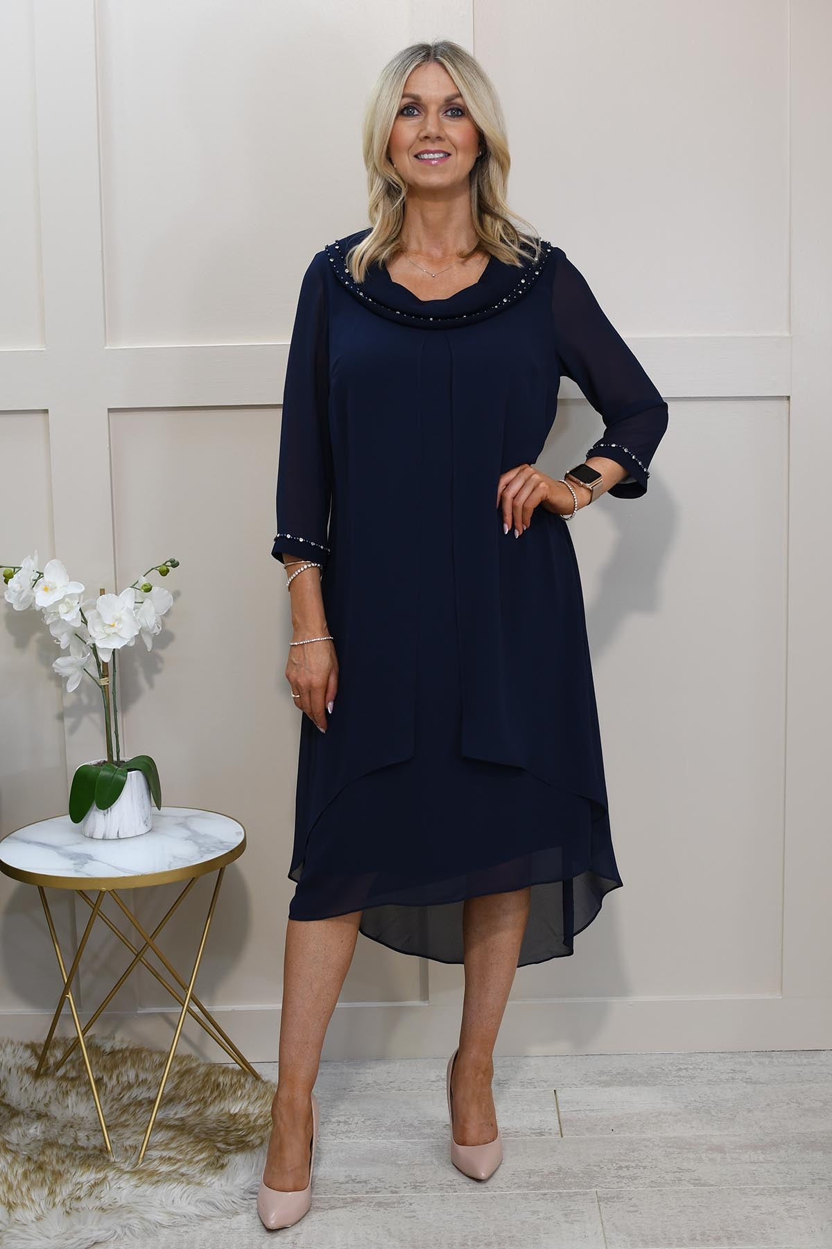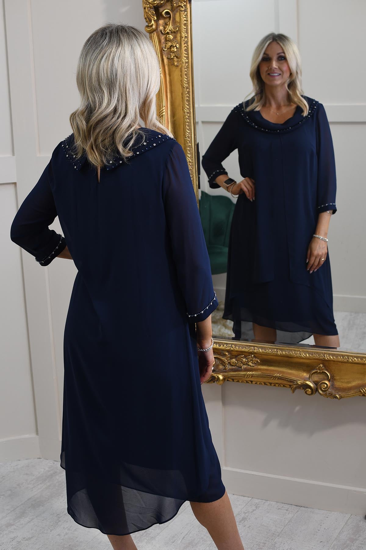 Lizabella Navy Straight Dress With Cape Overlay & Diamante Detail-L-25SS-2979-20
