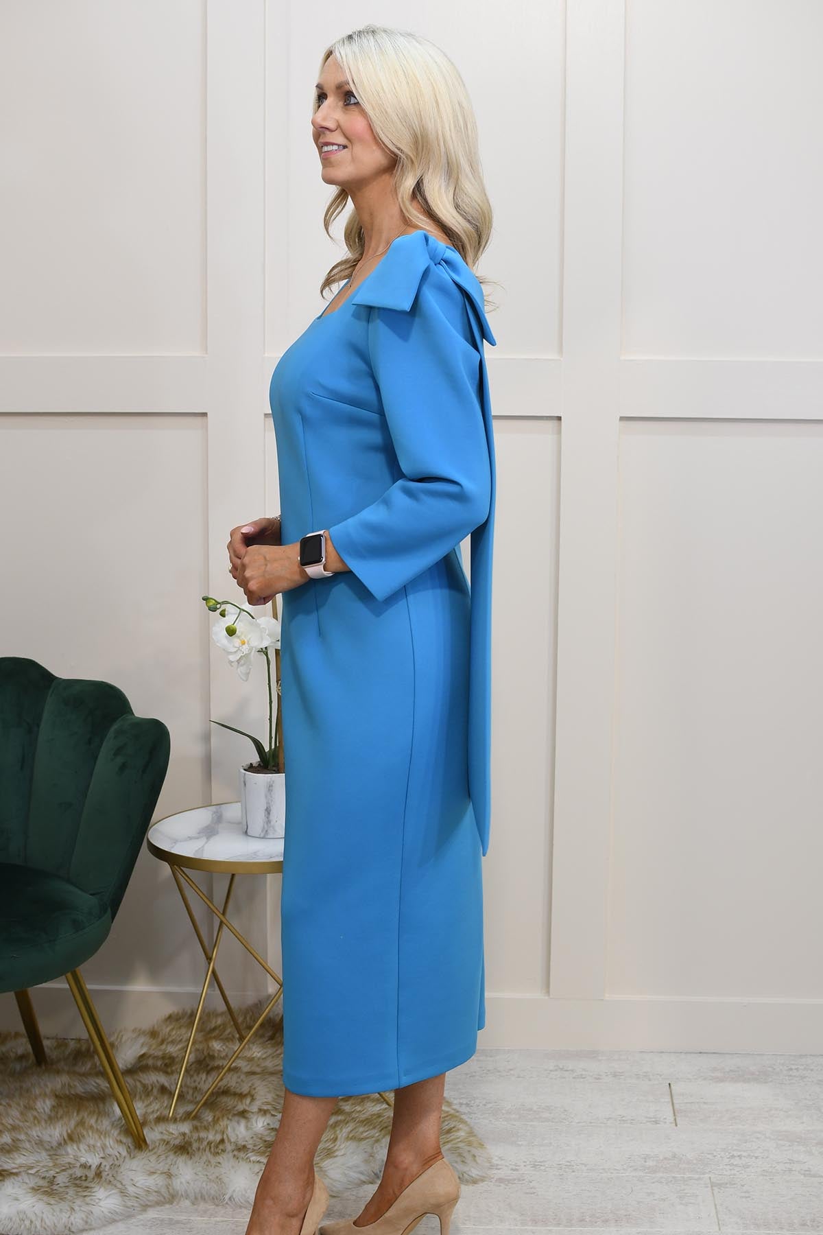 Lizabella Teal Straight Dress With Shoulder Bow Detail-L-24AW-2949-24