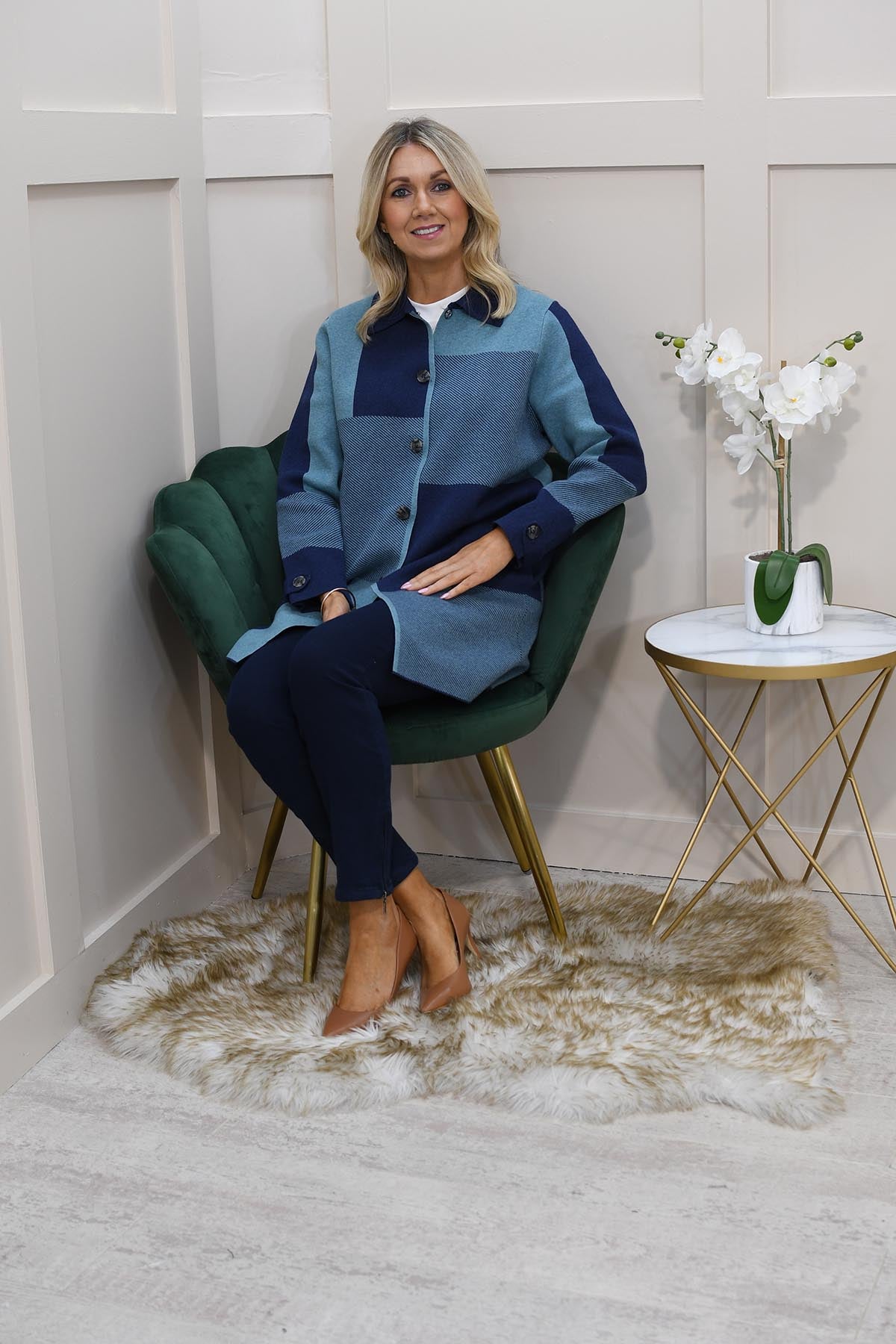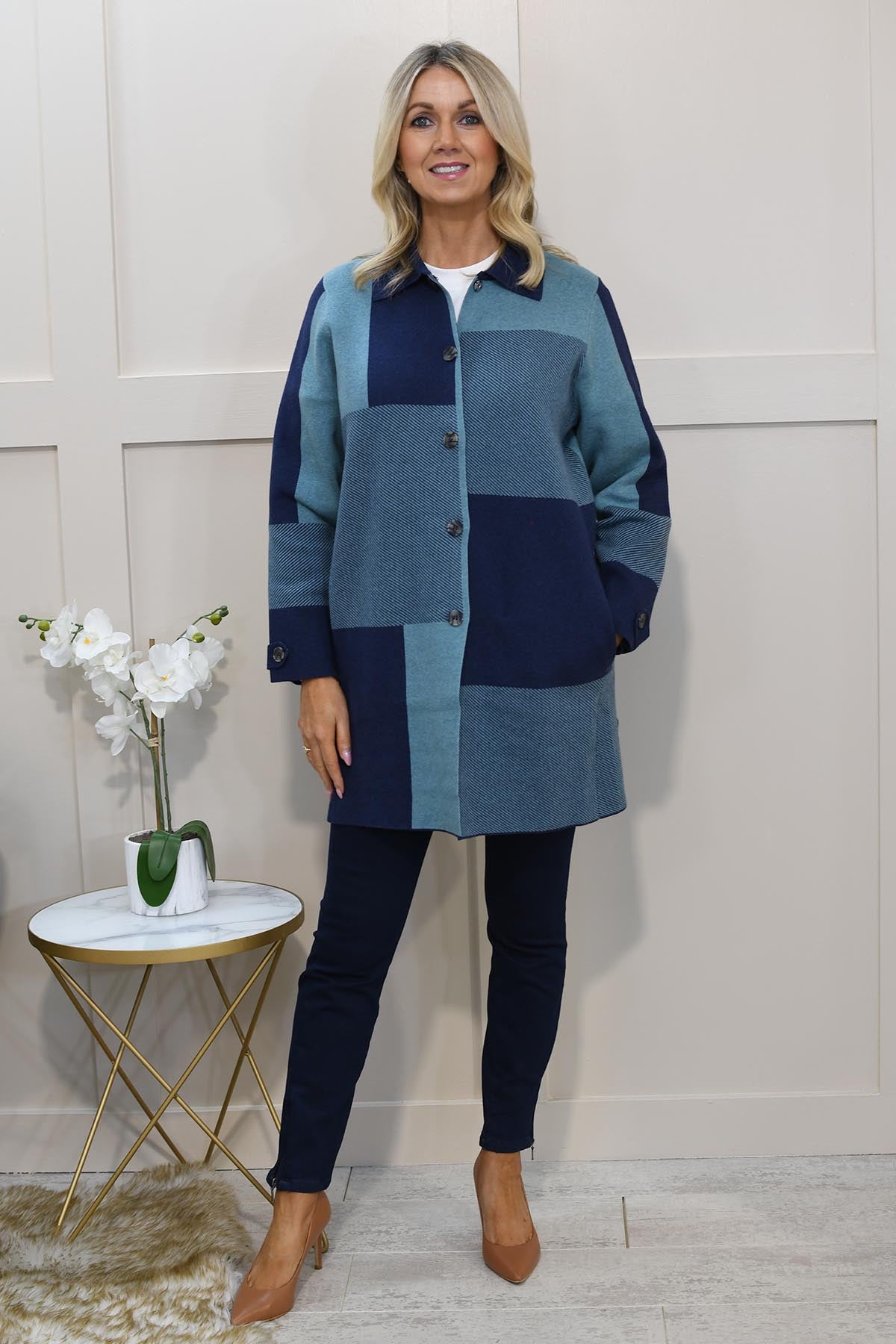 Refresh your knitwear collection with this Marble Block Pattern Knit Cardigan in soft teal and navy, crafted from a premium blend of 70% cotton and 30% polyamide. Designed for both comfort and style, this cardigan features a striking block pattern that adds a modern twist to a classic silhouette. The soft cotton-rich fabric offers breathability, while the added polyamide provides durability and shape retention, ensuring long-lasting wear. Perfect for layering over tops, blouses, or dresses, this versatile piece transitions seamlessly from casual weekends to smart-casual outings. A timeless wardrobe staple with a pop of colour for effortless everyday elegance.