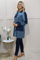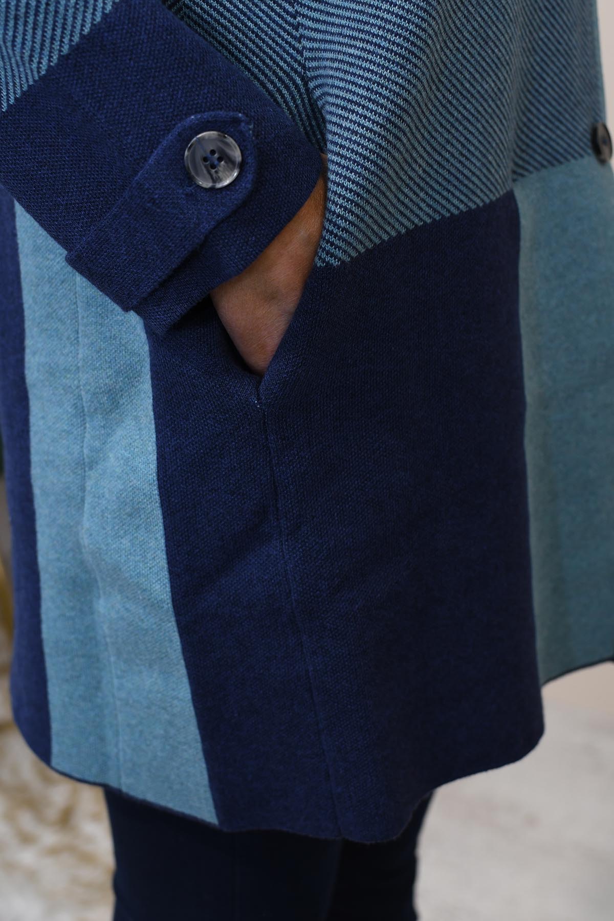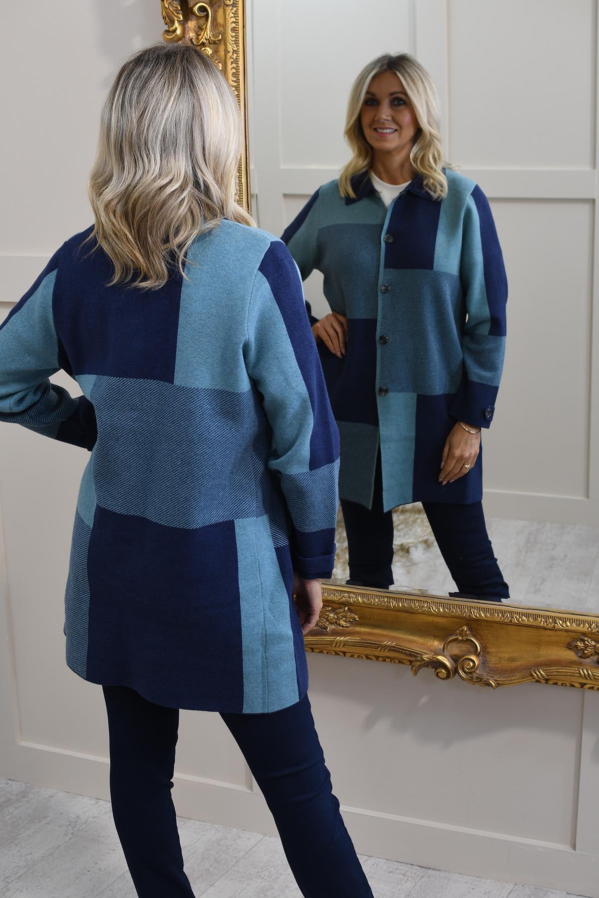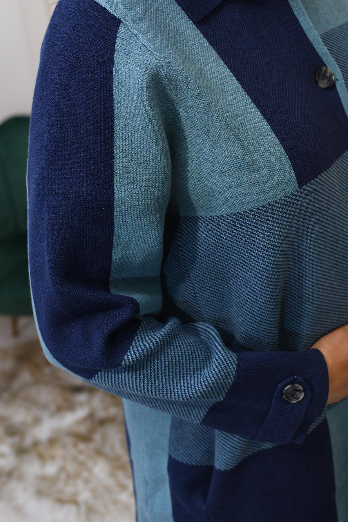 Marble- Block Pattern Knit Cardigan- Soft Teal & Navy -8110 223