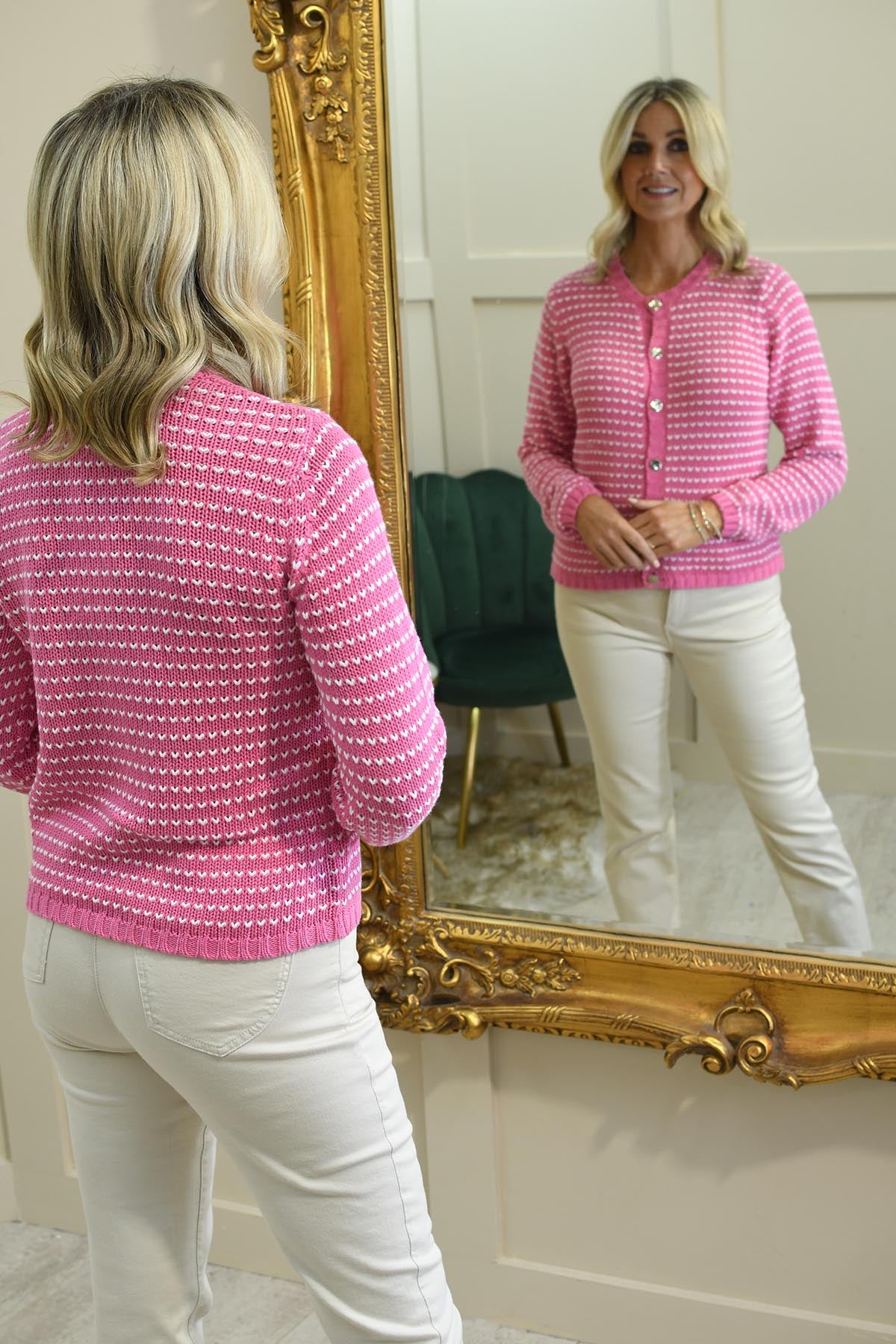 Marble Bubblegum Pink Cardigan With Heart Stitching- 7880 194