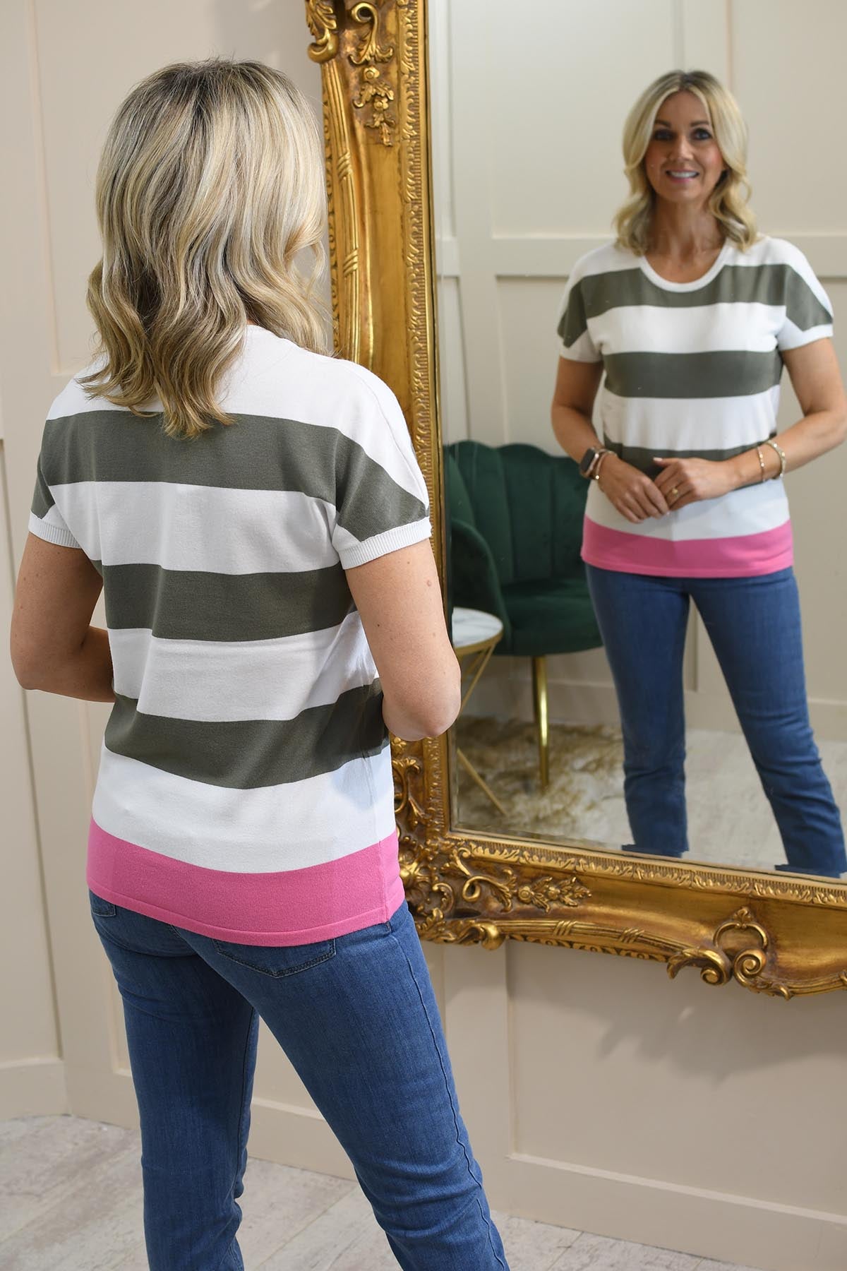 Marble Khaki, White & Pink Relaxed Fit Top- 7805 123