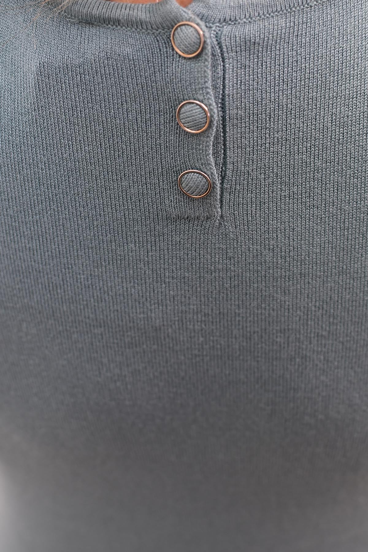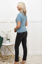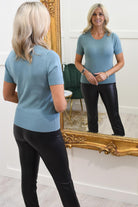 Marble Muted Teal Fine Knit Fitted Top-7512 223