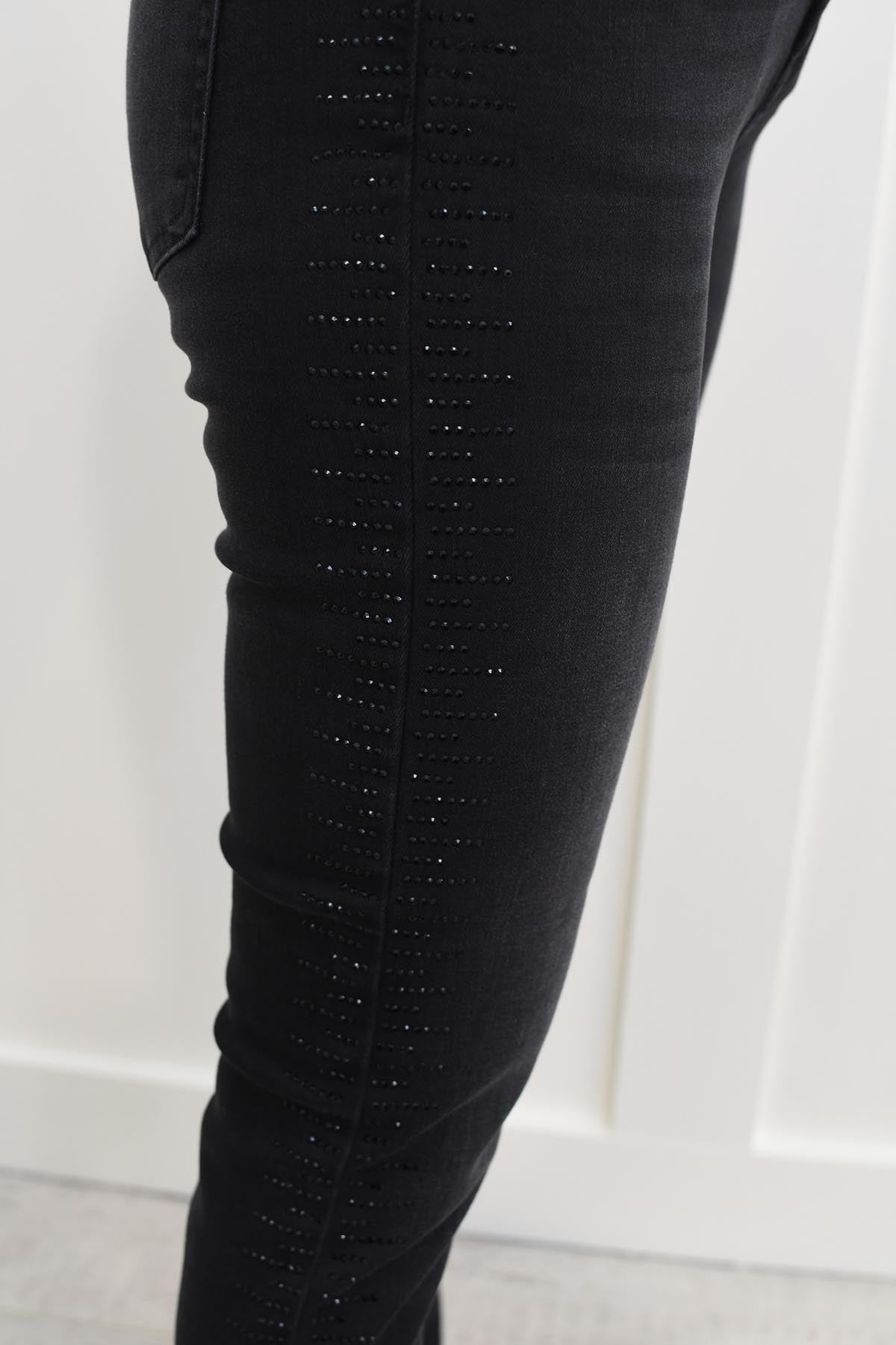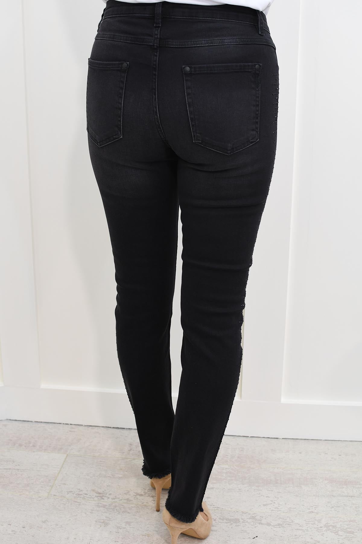 Monari Black Frayed Jeans With Diamante Side Panel Description
