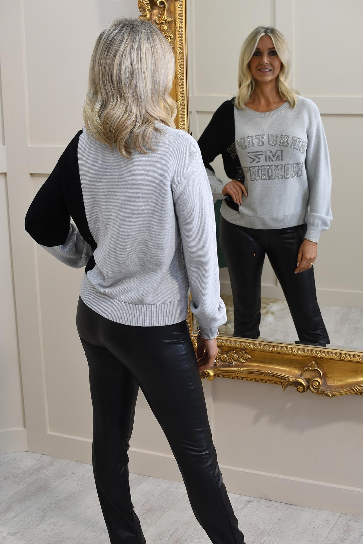 Monari- Diamante 'Beautiful Moments' Melange Sweater- Ash Grey & Black- 808954